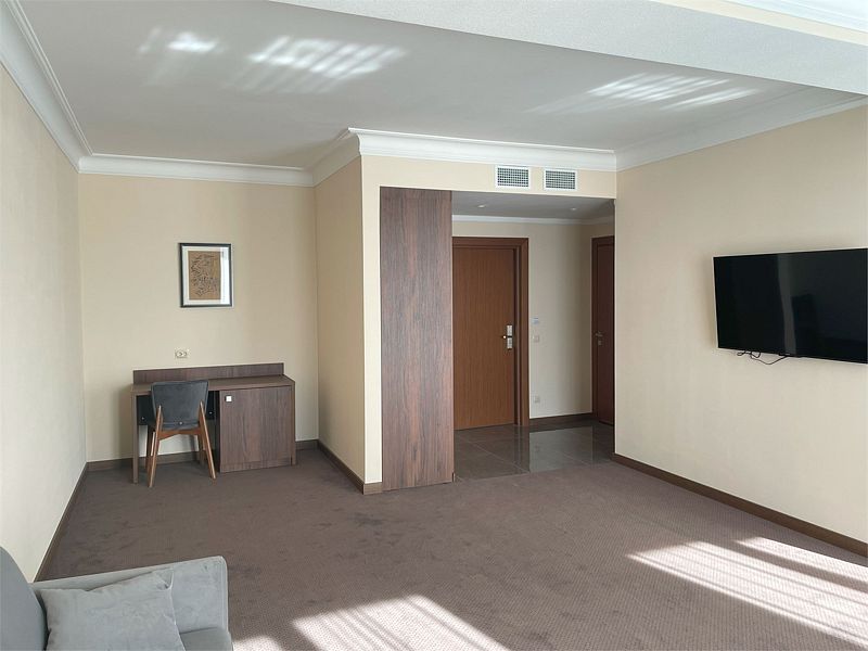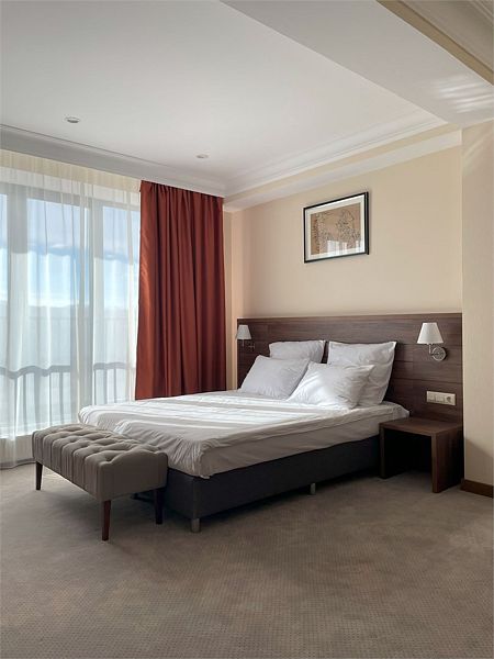 Номер категории люкс. Состоит из 2-х (спальня и гостиная) комнат, имеет роскошную отделку, обладает красивым видом из окна, имеет 2-й санузел рядом со спальней, халаты и все необходимое для комфортного проживания.