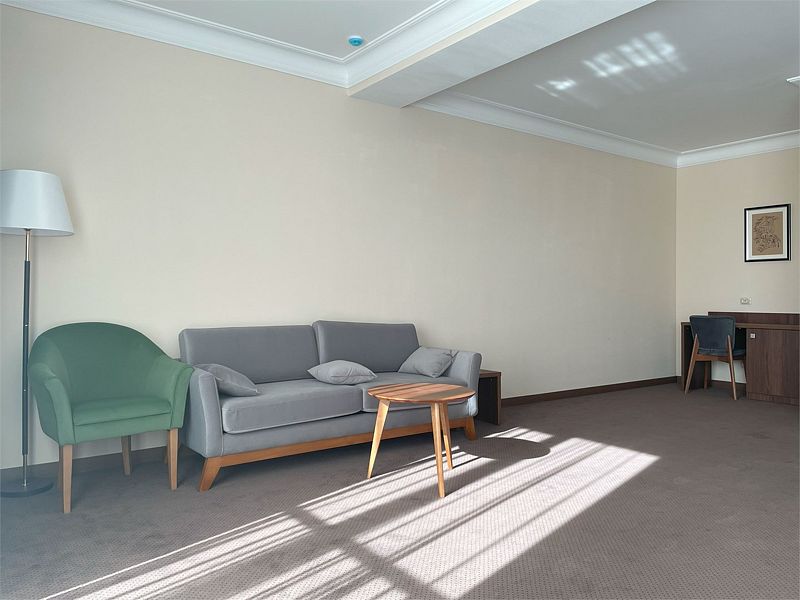 Также в номере имеется не раскладной диван (размер 180х90), по желанию гостя можно использовать как дополнительное спальное место.
