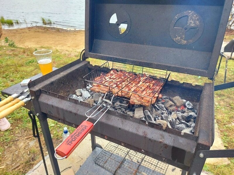 На территории базы отдыха располагается большая беседка и мангальная зона, где можно пожарить мясо и овощи на огне.