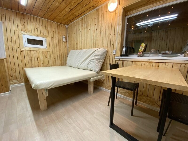 Имеется всё для комфортного проживания: двухъярусная кровать, диван, кондиционер, телевизор.
