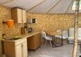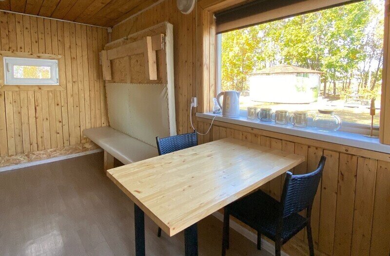 Для проживания предусмотрена уютная юрта, оборудованная двухярусной кроватью, диваном, кухонной зоной со столом, посудой и микроволновой печью. Умывальник, раковина – в юрте, удобства – на улице.