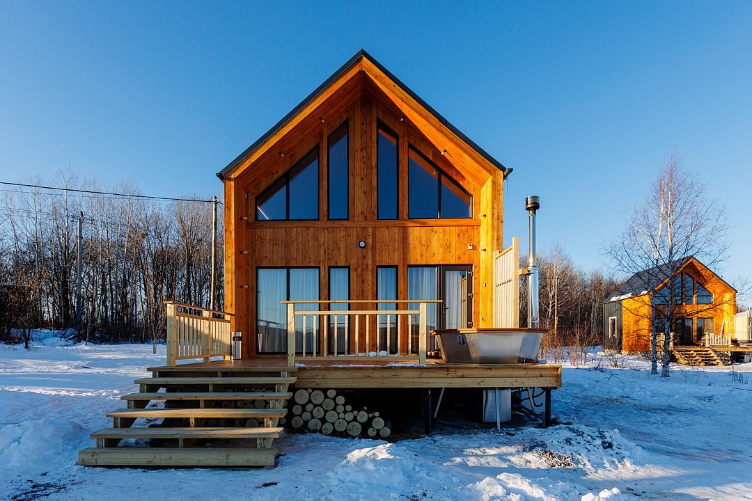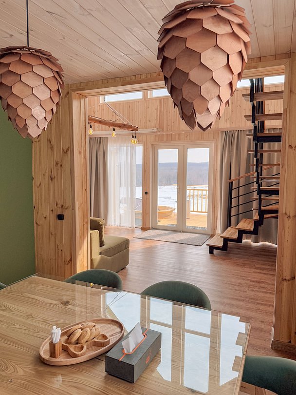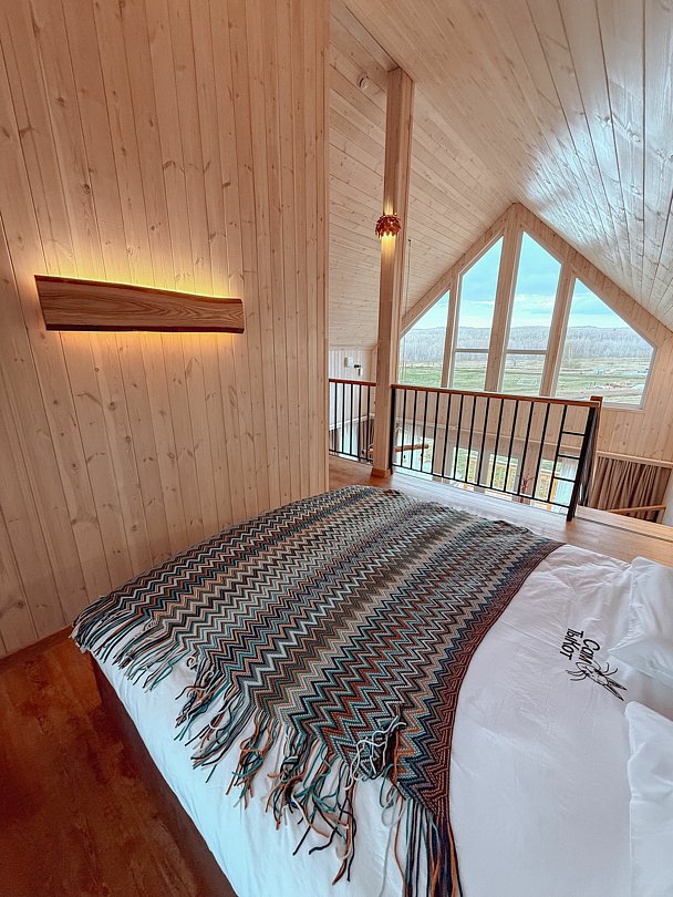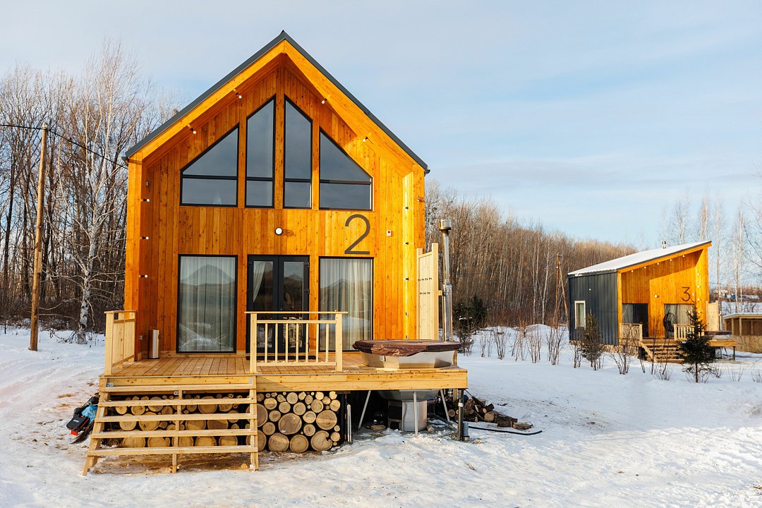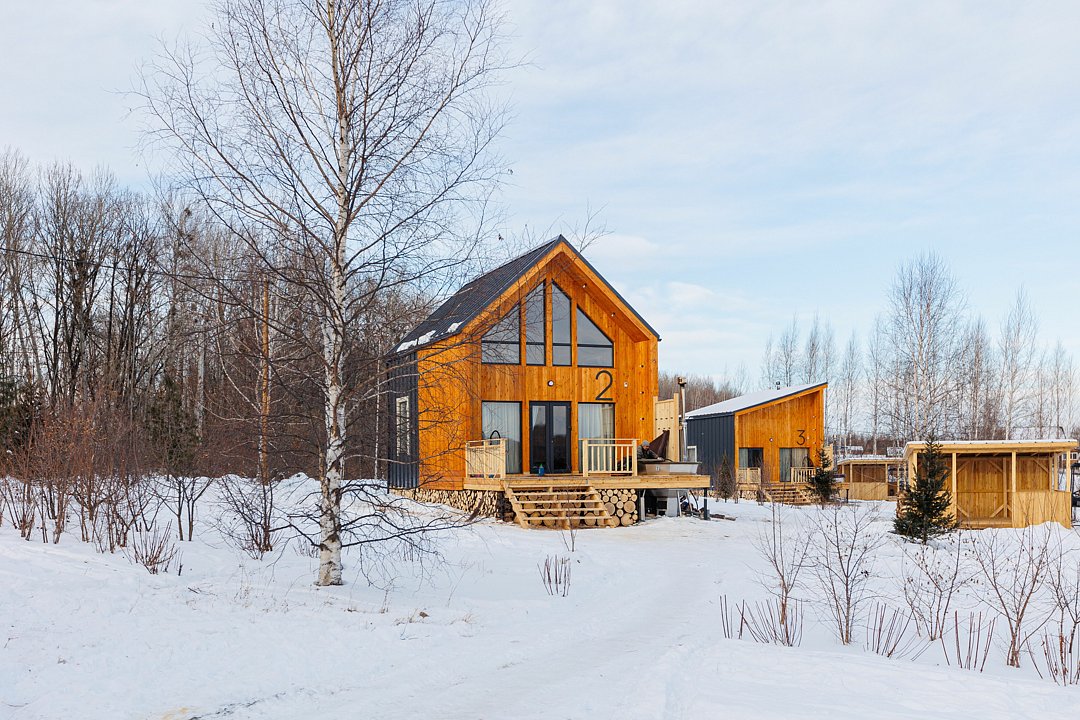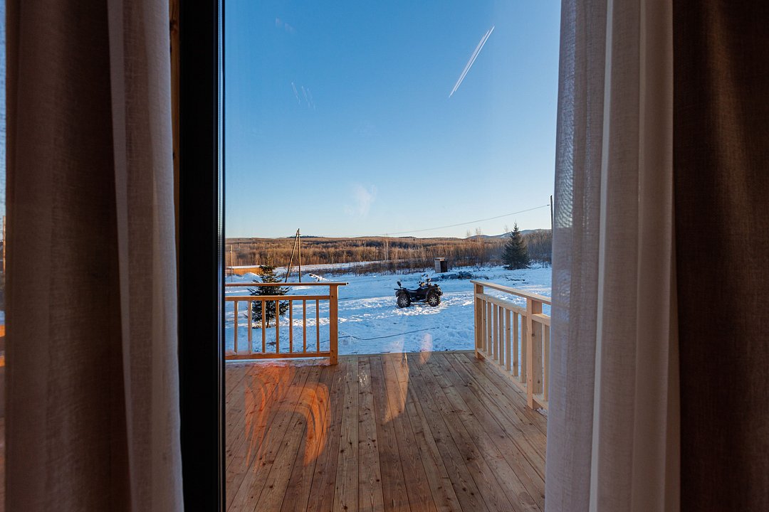 На территории 20 га располагаются современные Барнхаусы с террасой и панорамными окнами, полностью оснащенные для комфортного проживания. На террасе каждого дома установлен Сибирский банный чан. У каждого дома своя территория, костровая зона, крытая мангальная зона. Проснувшись, вы сможете наблюдать невероятные рассветы. Из окон каждого дома открываются шикарные виды на лес и горы.