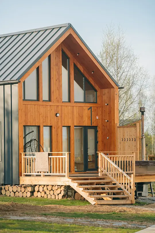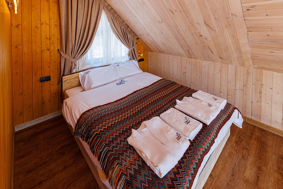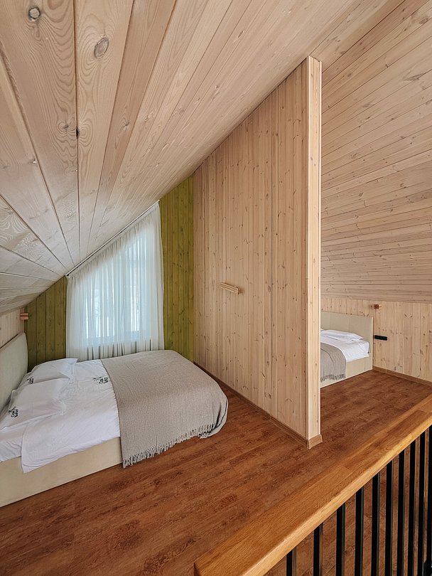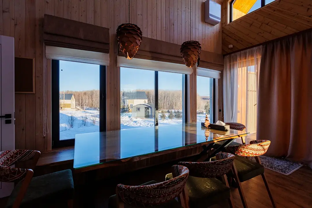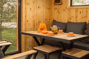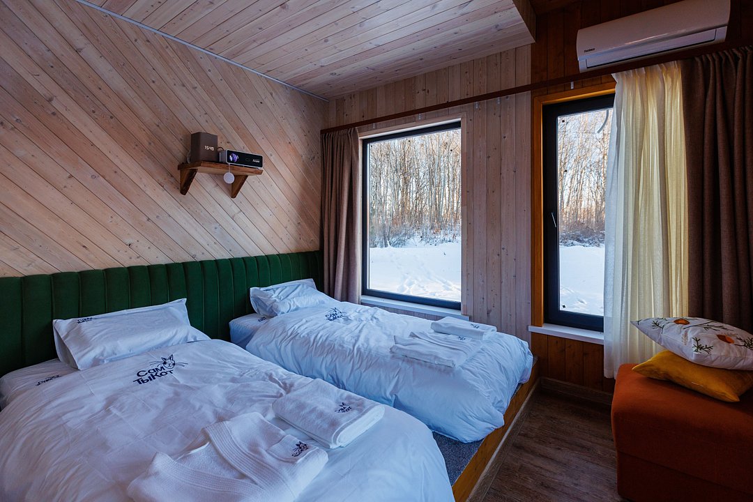 На территории 20 га располагаются современные Барнхаусы с террасой и панорамными окнами, полностью оснащенные для комфортного проживания. На террасе каждого дома установлен Сибирский банный чан. У каждого дома своя территория, костровая зона, крытая мангальная зона. Проснувшись, вы сможете наблюдать невероятные рассветы. Из окон каждого дома открываются шикарные виды на лес и горы.