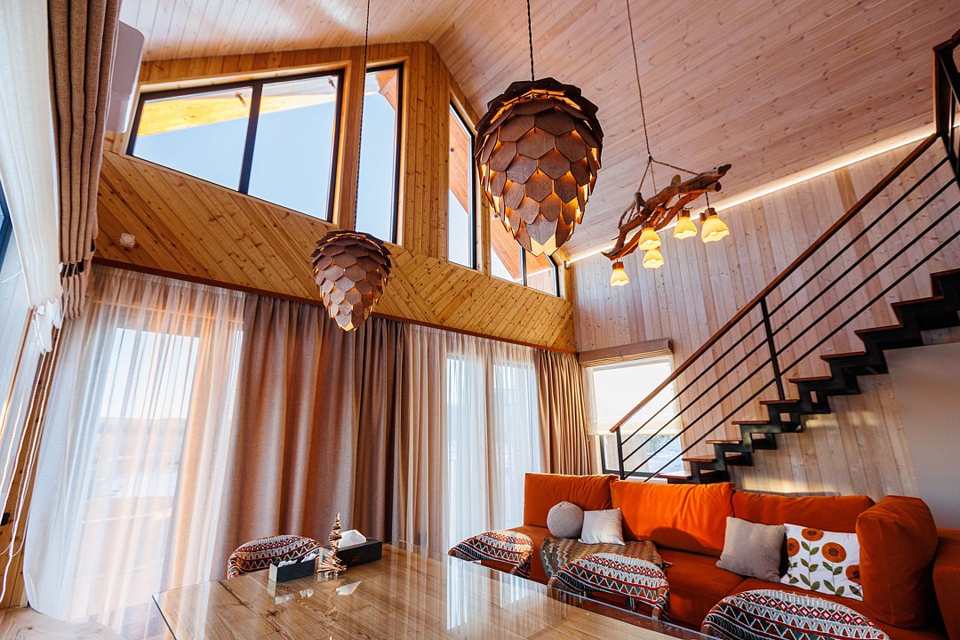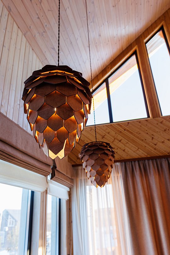 Комфортный двухэтажный дом с двойным светом и панорамным остеклением, которое позволяет любоваться невероятными рассветами и прекрасным видом на горы. Дизайн дома выполнен в теплых оттенках, а стены украшены картинами Дальневосточных художников.