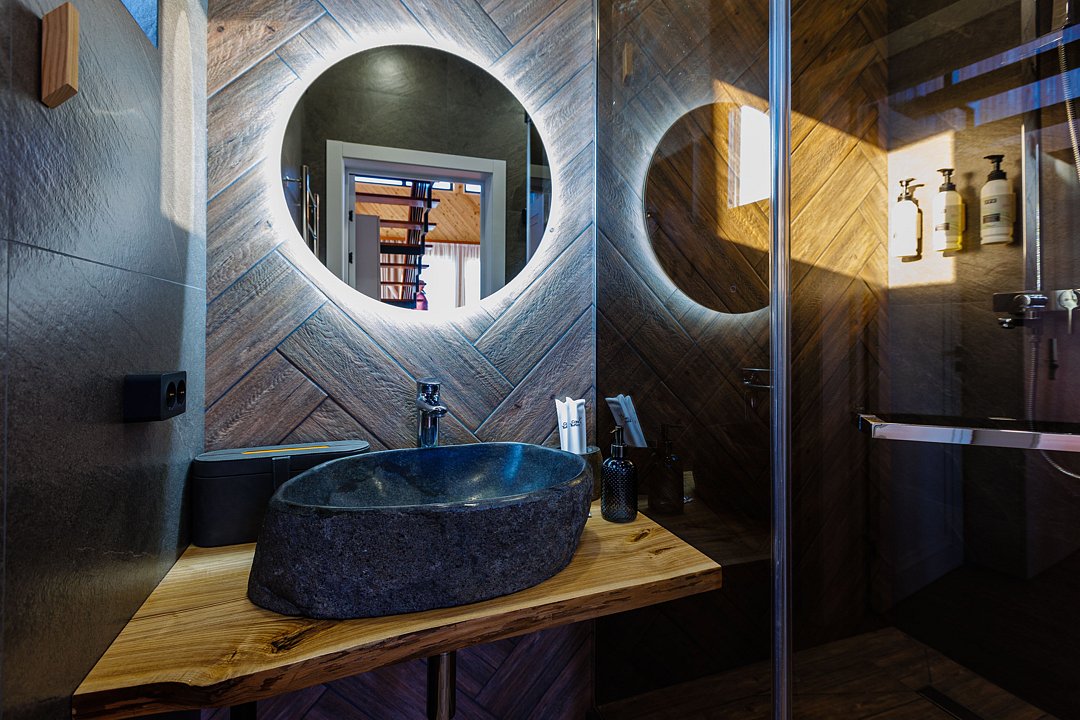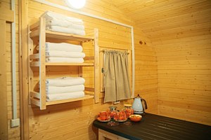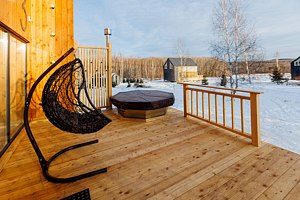 Отдохнуть душой и телом вы сможете в Сибирском банном чане на дровах, который расположен на террасе каждого дома.