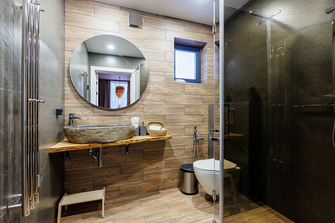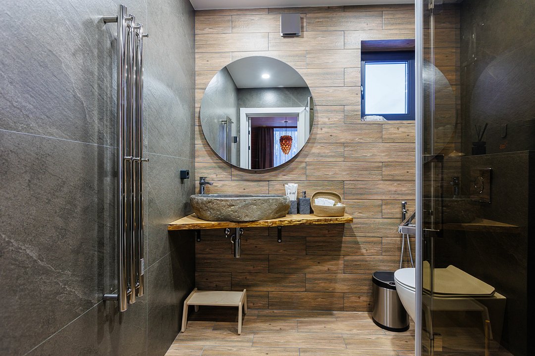Комфортный двухэтажный дом с двойным светом и панорамным остеклением, которое позволяет любоваться невероятными рассветами и прекрасным видом на горы.