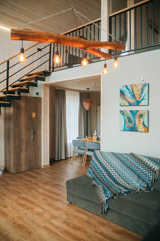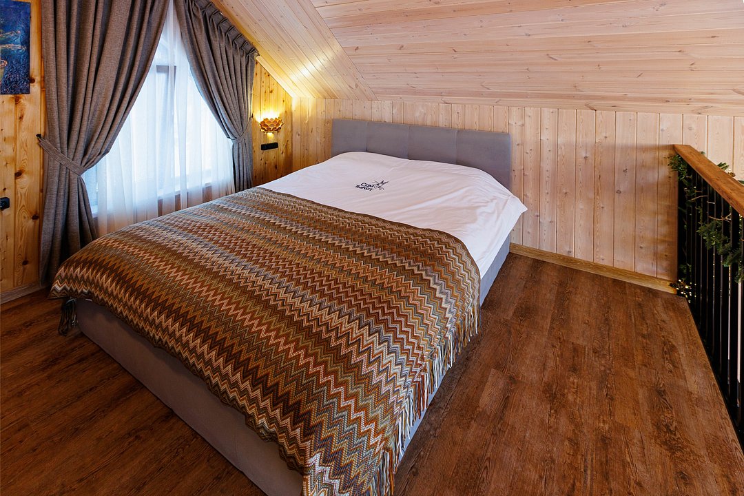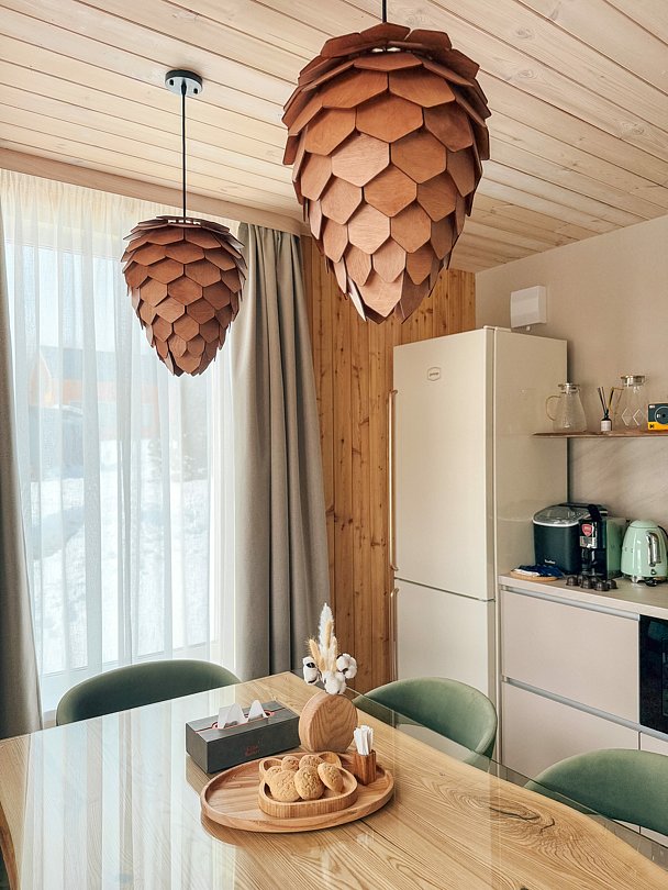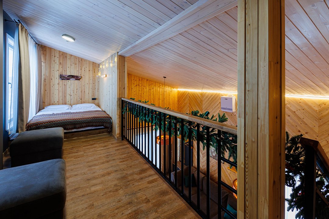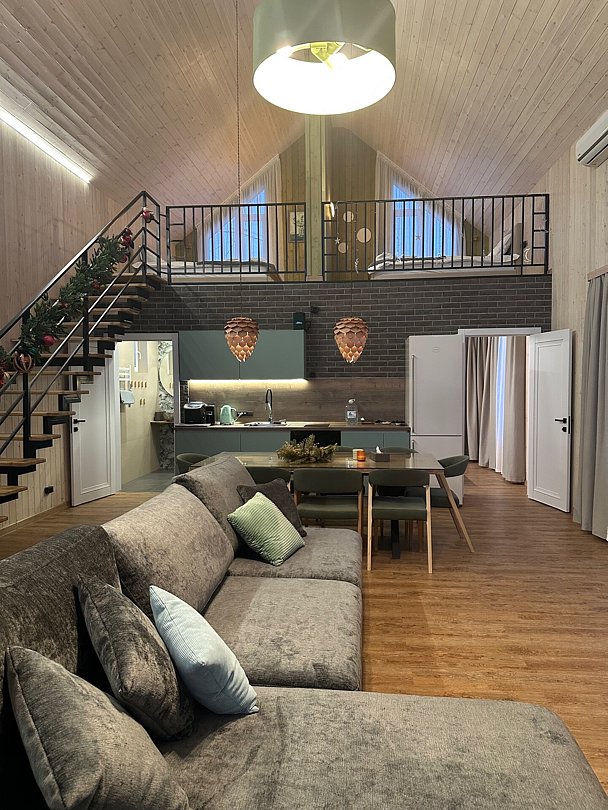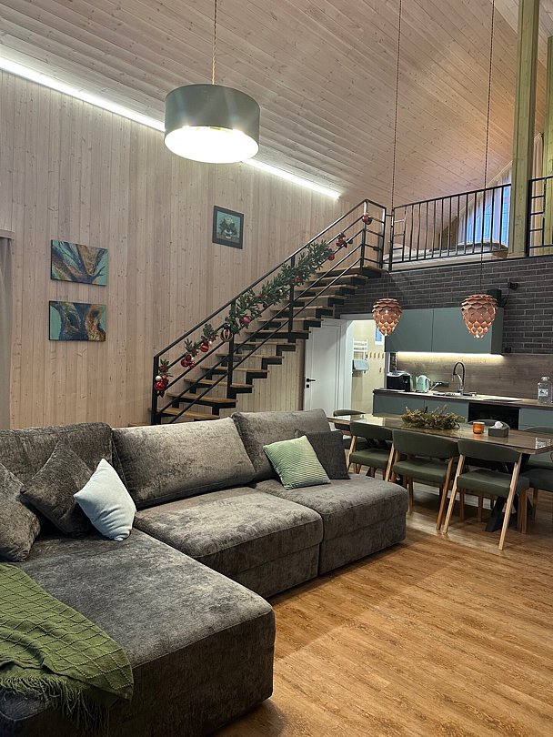 В доме просторная гостиная с большим диваном, три спальни, санузел, высокие потолки, удобная безопасная лестница, теплый пол, Wi-fi, две умные колонки с Алисой, книги, настольные игры. В отдельной комнате на первом этаже видеопроектор с большим экраном, здесь вы сможете с комфортом посмотреть любимые фильмы.