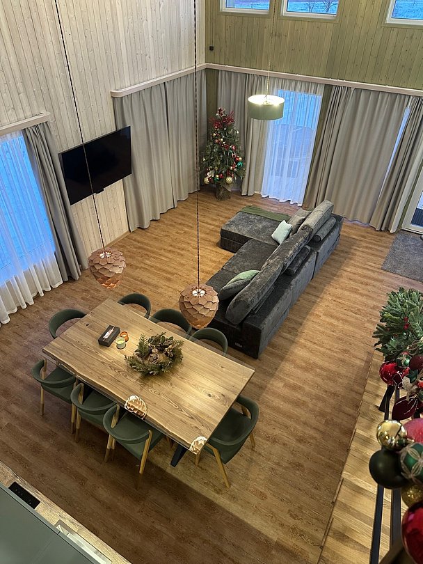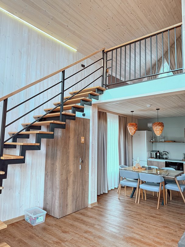 Максимальная вместимость дома 8 взрослых и трое детей до 7-ми лет без дополнительного спального места. В доме 3 двуспальных кровати 1,8 м и большой раскладной диван.