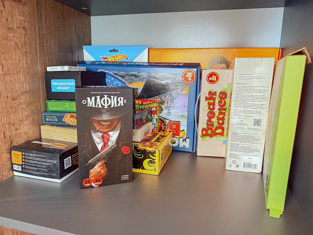 В доме просторная гостиная с большим диваном, две спальни, санузел, высокие потолки, удобная безопасная лестница, теплый пол, Wi-fi, умная колонка с Алисой, книги, настольные игры, видеопроектор с большим экраном.