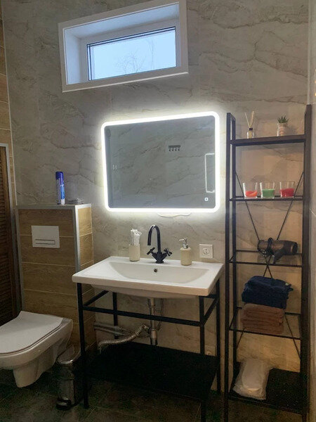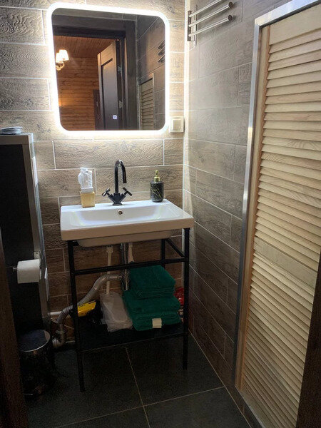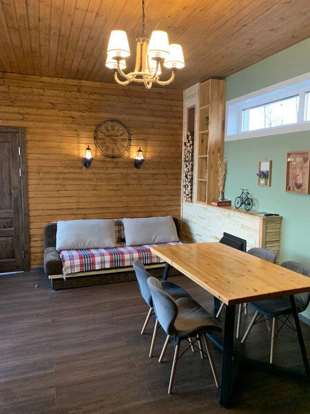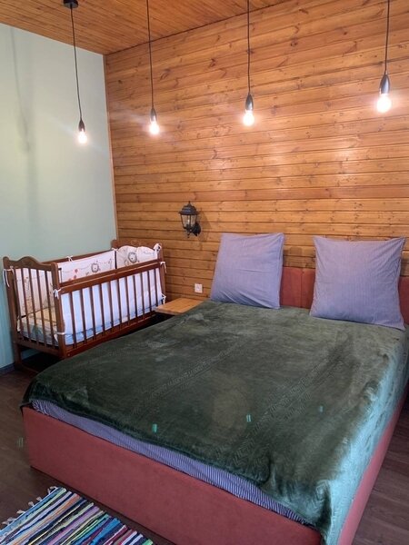 В доме есть, полностью оборудованная кухня, просторная гостиная, весь комплект посуды, настольные игры, принадлежности для бани. Также 2 раздельные спальни, в каждой - двуспальная кровать, комплекты постельного белья, полотенца, шкаф. Есть всё необходимое.