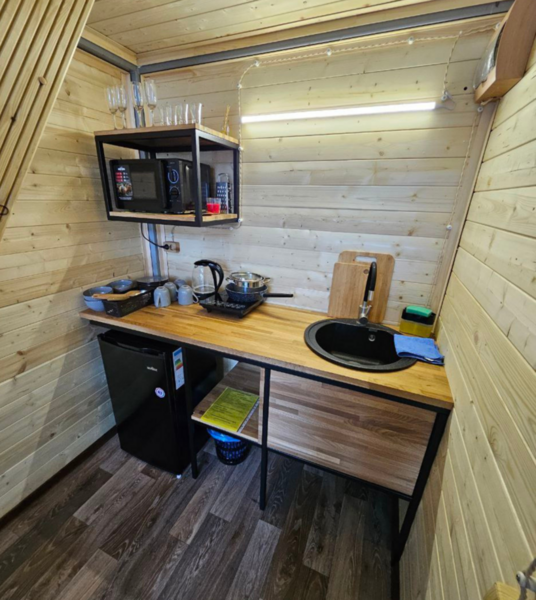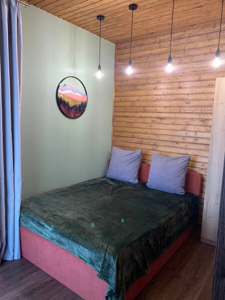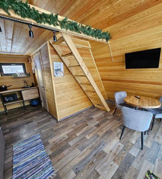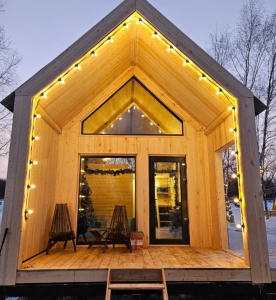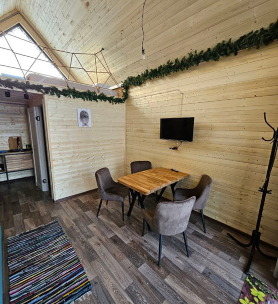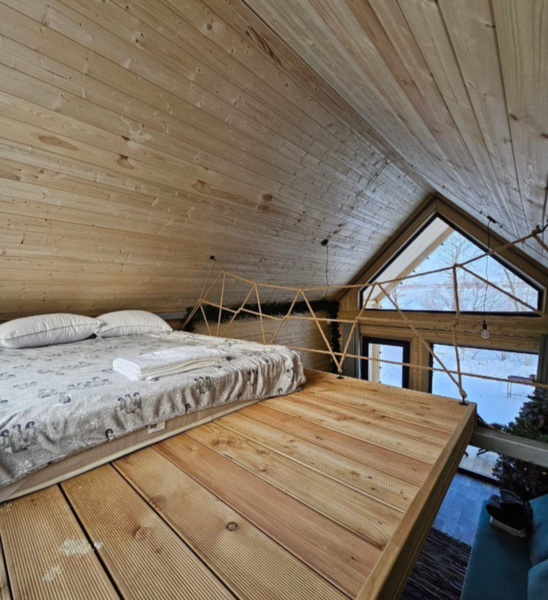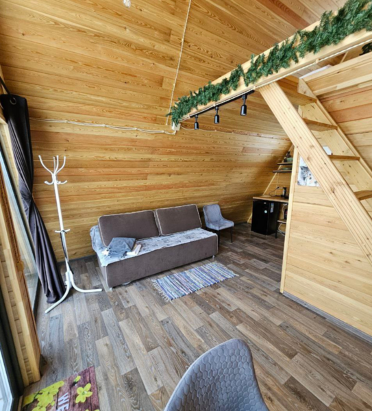 Архитектурный стиль дома, известный как A-frame, обеспечивает проживание для 2-4 человек, предлагая уютное и хорошо оборудованное пространство. Заезд доступен с 15:00, выезд — до 13:00.