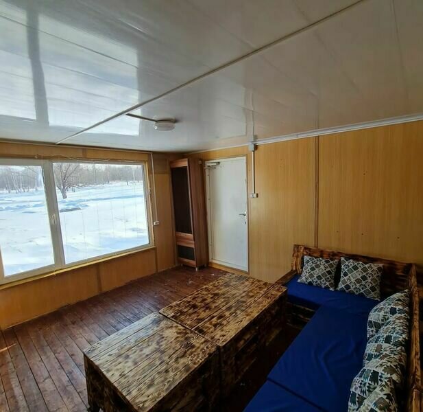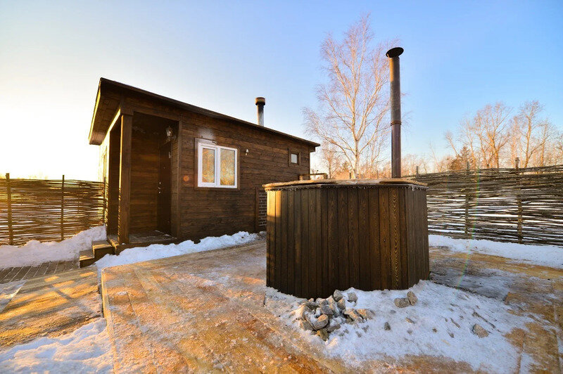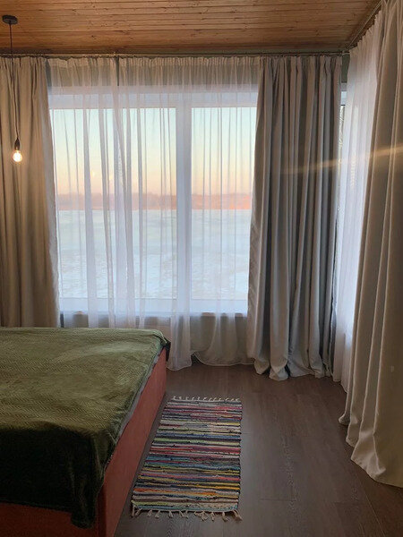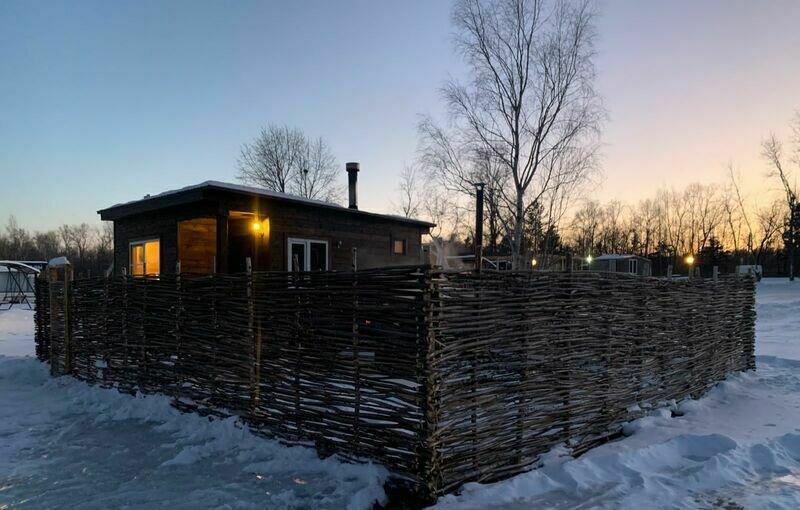 Панорамные окна открывают невероятный вид на рассвете и закате, на заснеженное озеро и природу вокруг. Заезд доступен с 14:00, выезд — до 12:00.