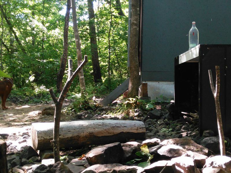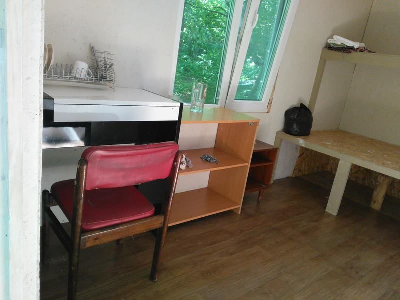 Домик в лесу рассчитан на три спальных места — одно двуспальное внизу и одно односпальное — над двуспальным, с возможностью размещения домашних животных. Прогулки по лесу. У дома есть кострище.