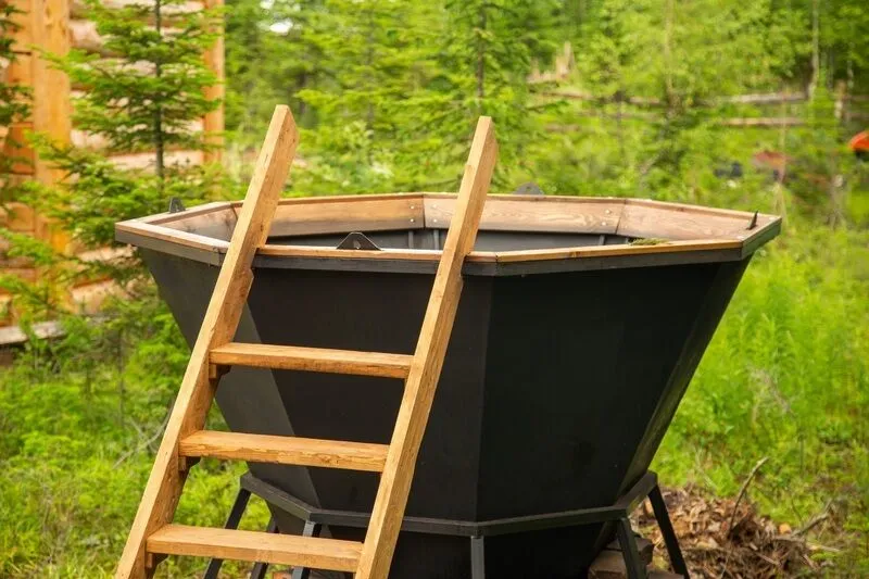 Водоснабжение постоянное, вода из скважины. В номерах – отдельные комнаты-уборные с туалетом и раковиной, в шалашах и гексагоне – душевые кабины.