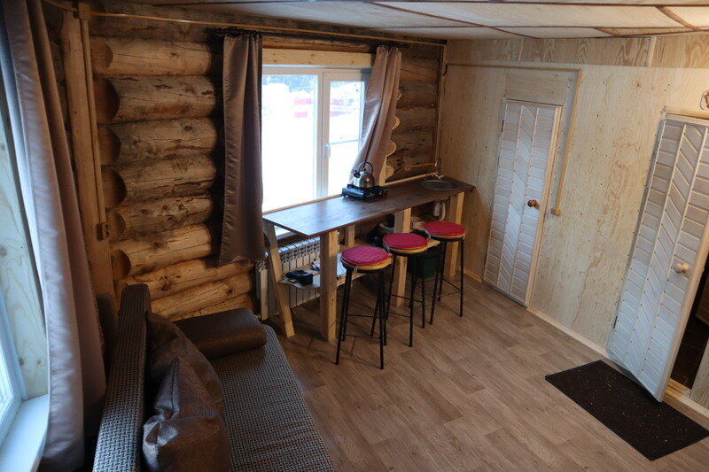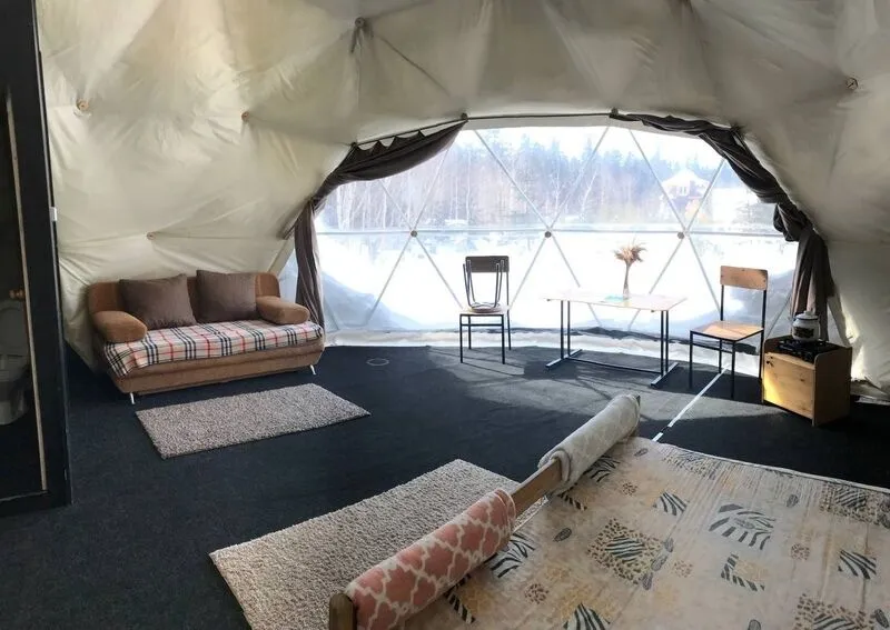 Все жилые строения отапливаются, летом охлаждаются за счет полотна на панорамном окне, в жаркую погоду подключаются кондиционеры. Постельное белье выдается во всех домиках, посуду нужно брать с собой. В куполах и шалашах есть мини-кухни с газовой печкой и чайником, в гексагоне – кухня с барной стойкой и набор посуды на 10 персон. Газовый баллон приобретается дополнительно или привозится с собой.