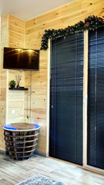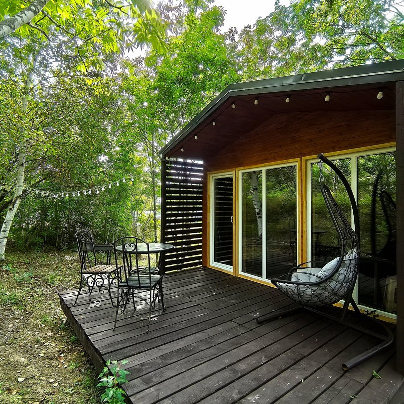 Уютный мини барн, оснащенный всем необхдимым для проживания. Панорамное окно и терраса с видом на лес. Собственная мангальная зона и костровая чаша. Идеальный вариант для романтика