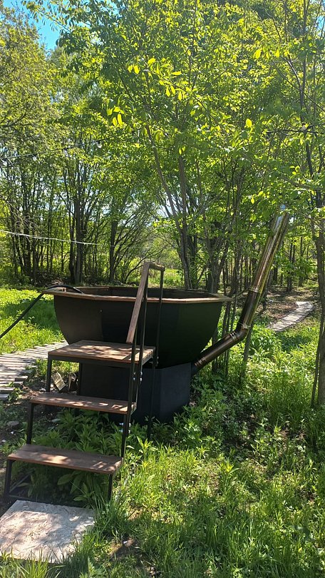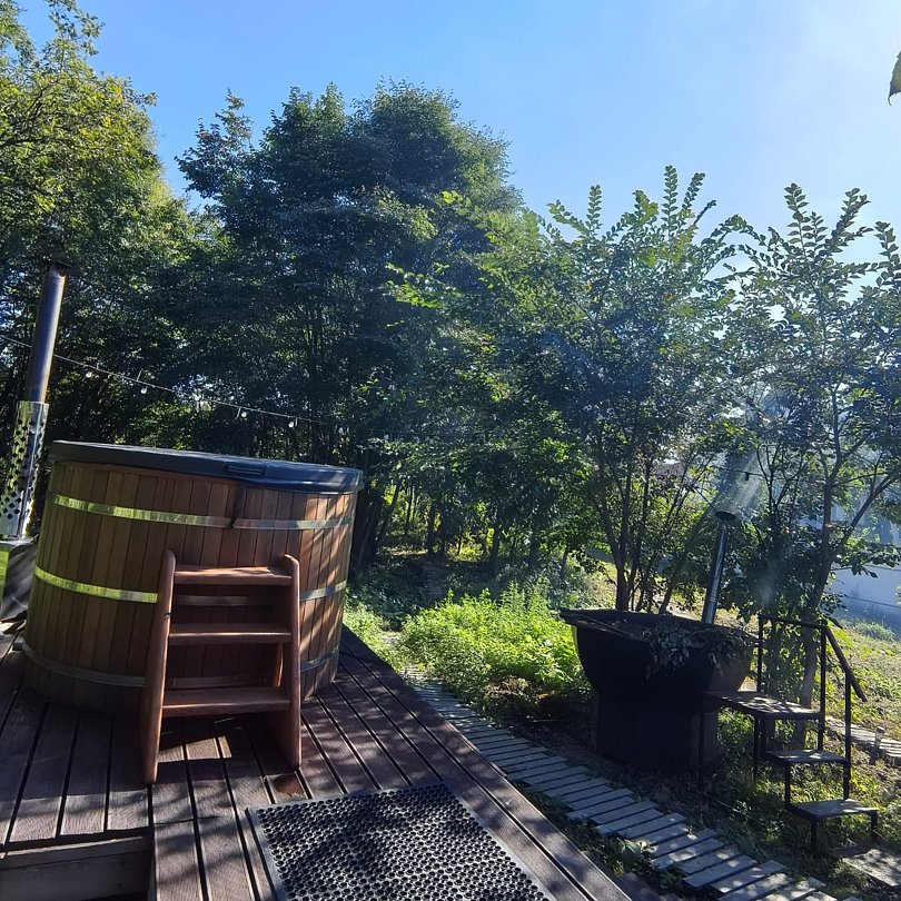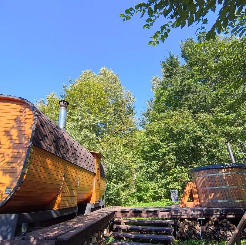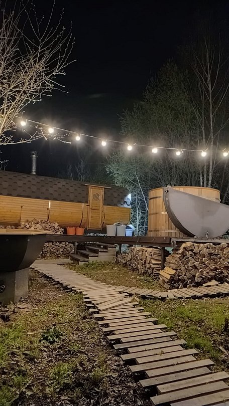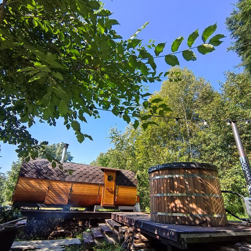 На территории глэмпинг-парка Манамур есть настоящая русская баня на дровах, рассчитанная на 4–6 человек.