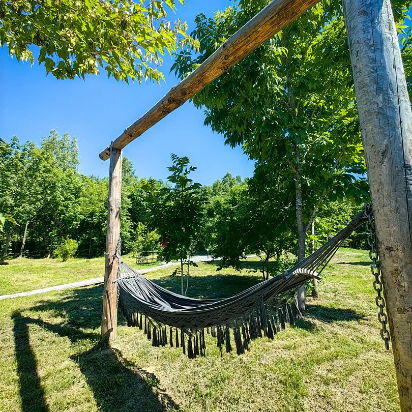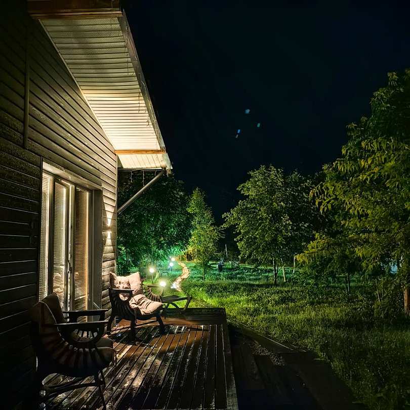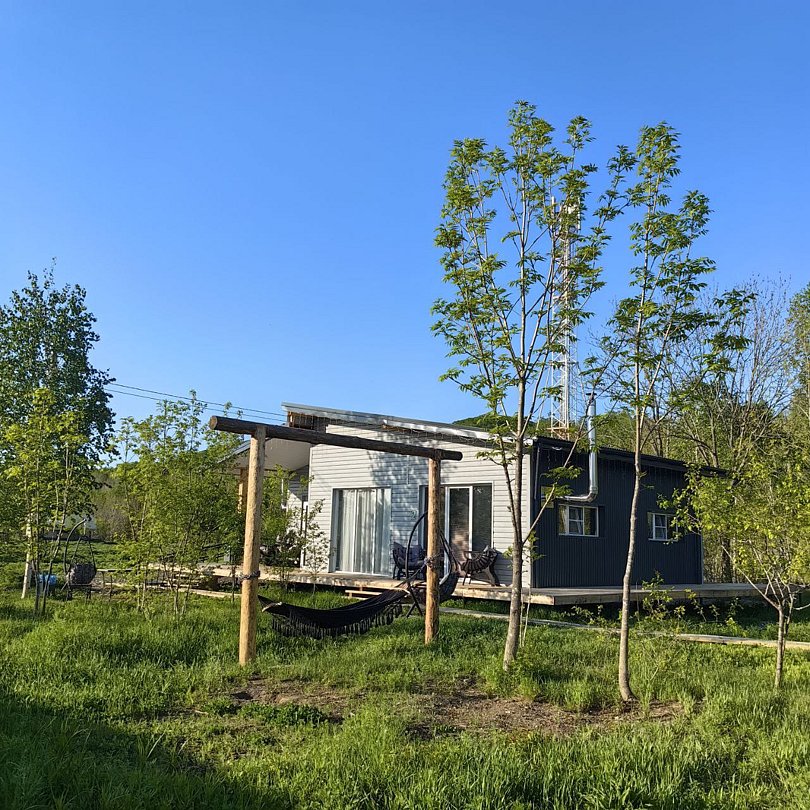 Семейный отдыхДостоинстваВсе понравилось, уютные домики и вся обстановка новая , есть мангальная зона ,хороший большой бассейн с шезлонгами (нас это удивило мы не знали о нем), река в 1 минуте ходьбы, есть велосипеды, нам очень понравилось. Рекомендуем. Очень уютно там.