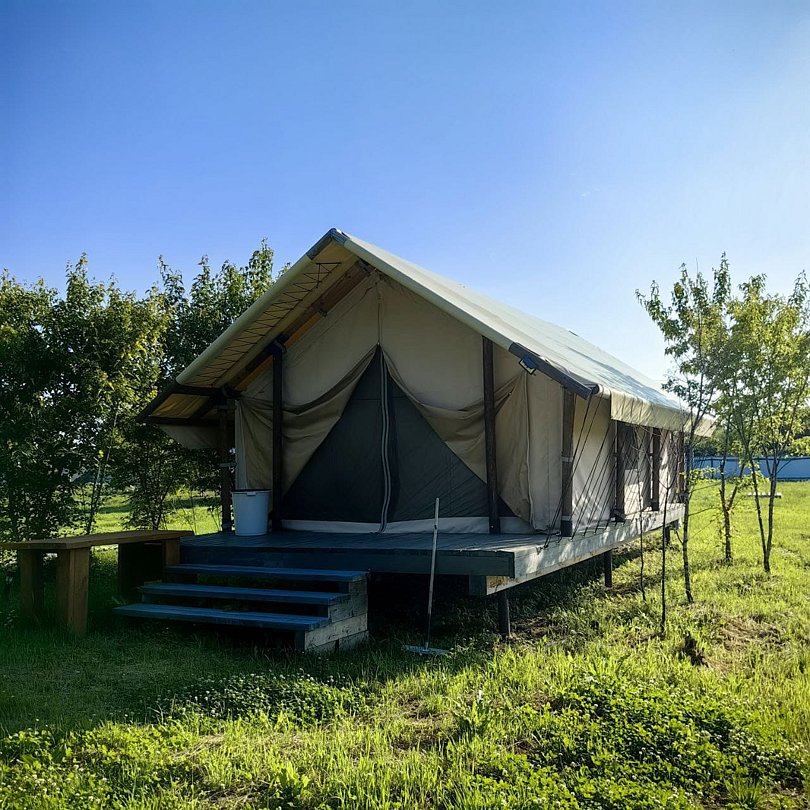 На территории глэмпинг-парка — дома и сафари-тенты. Вы сможете проживать и наслаждаться природой, при этом не отказывая себе в современных удобствах и комфорте. Даже насекомые не помешают вашему отдыху!
