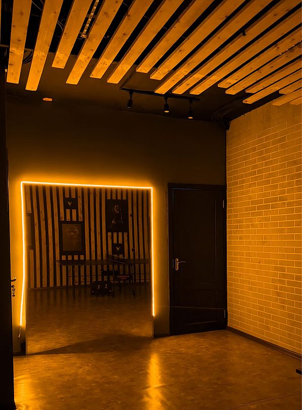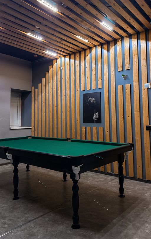 В доме есть всё необходимое для комфортного пребывания и развлечения: кухня, санузел, зона отдыха с телевизором и приставкой, финская сауна для расслабления, караоке зал для любителей пения, теннисный стол и бильярд для активного досуга, а также особая красная комната.
