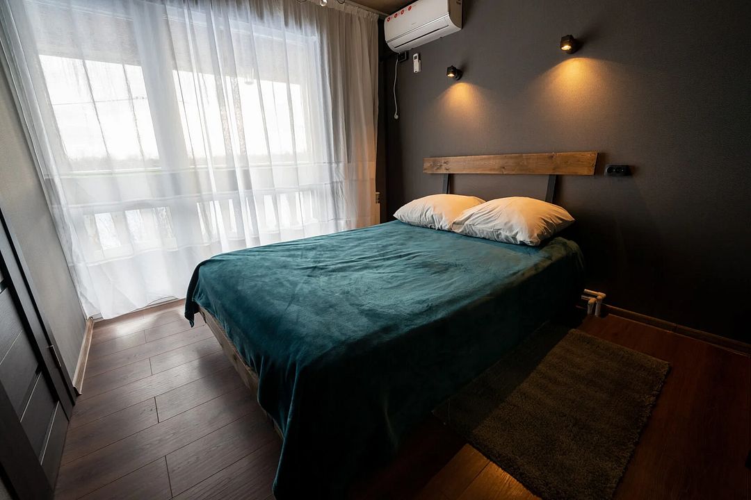 - имеется Wi-Fi, телевизор, холодильник, диван на два спальных места, стол, стеллаж, электрочайник, кондиционер;