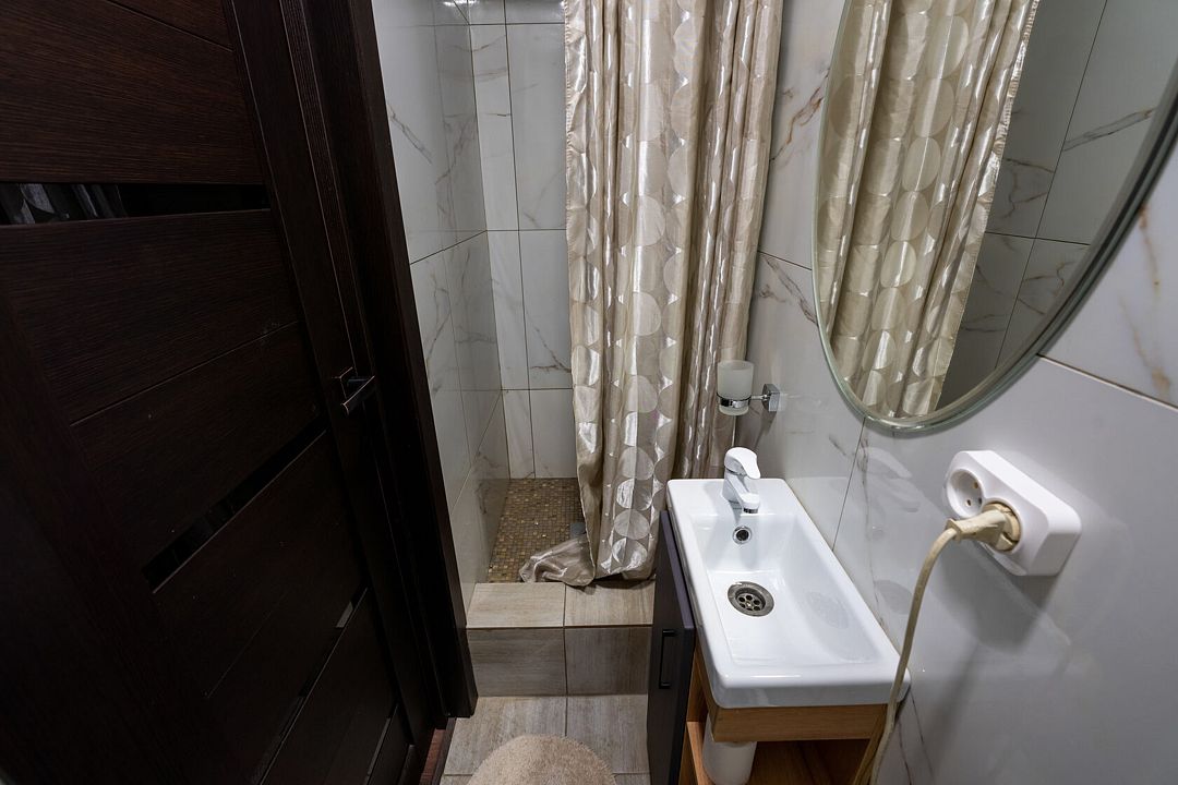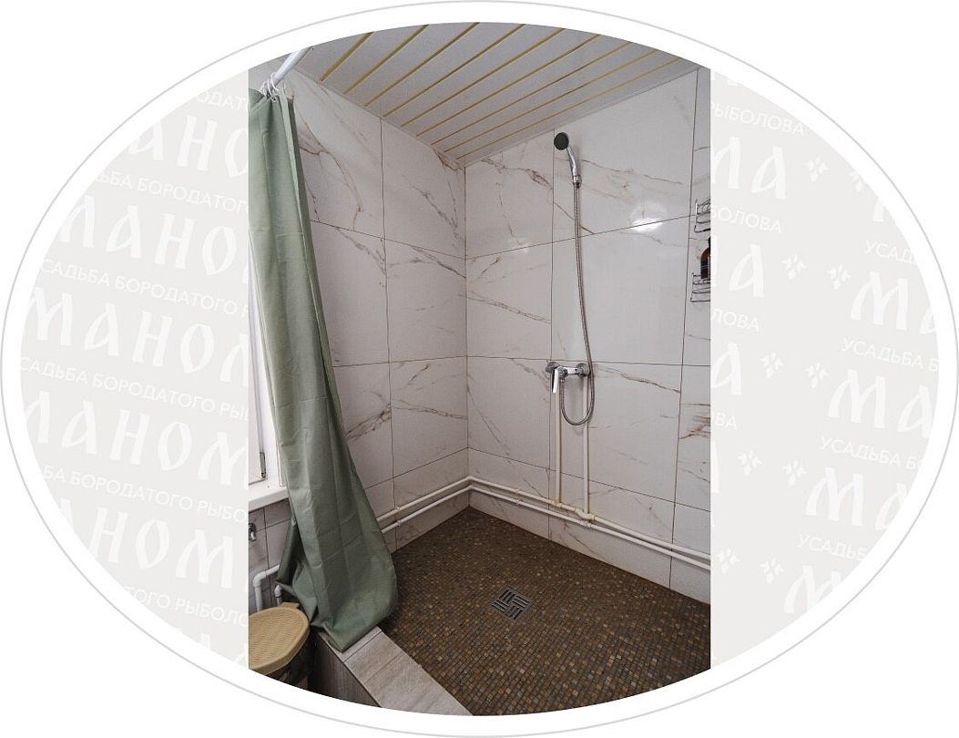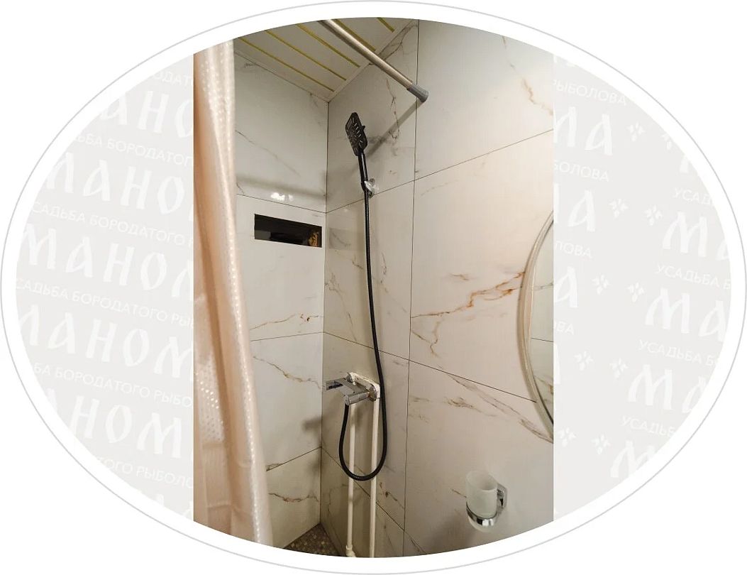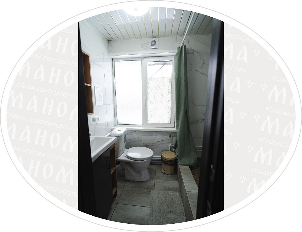 - душевая зона (душ, унитаз, раковина, стаканчик для зубных щеток, мыло для рук, полотенца ручные, банные, фен по запросу у администратора);