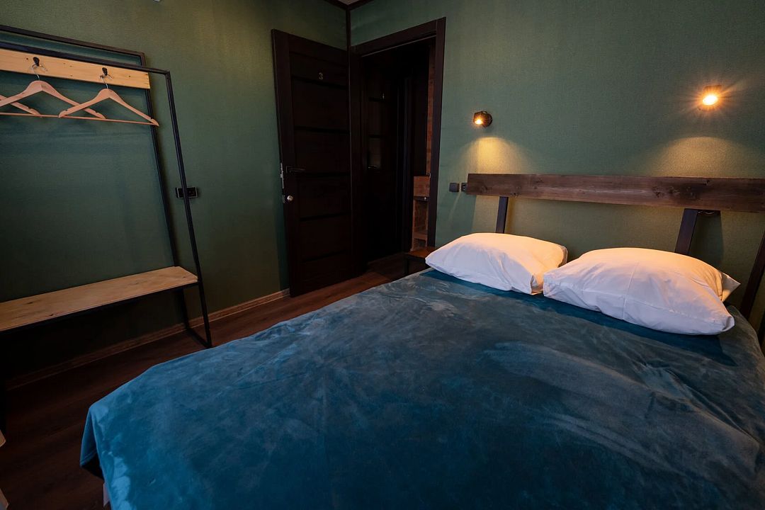 - на 1 этаже спальня с двуспальной кроватью, вешалка для одежды;
