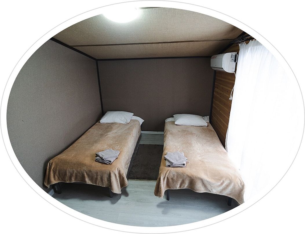 - комната — две односпальные кровати, стеллаж, кондиционер — 2 чел.;