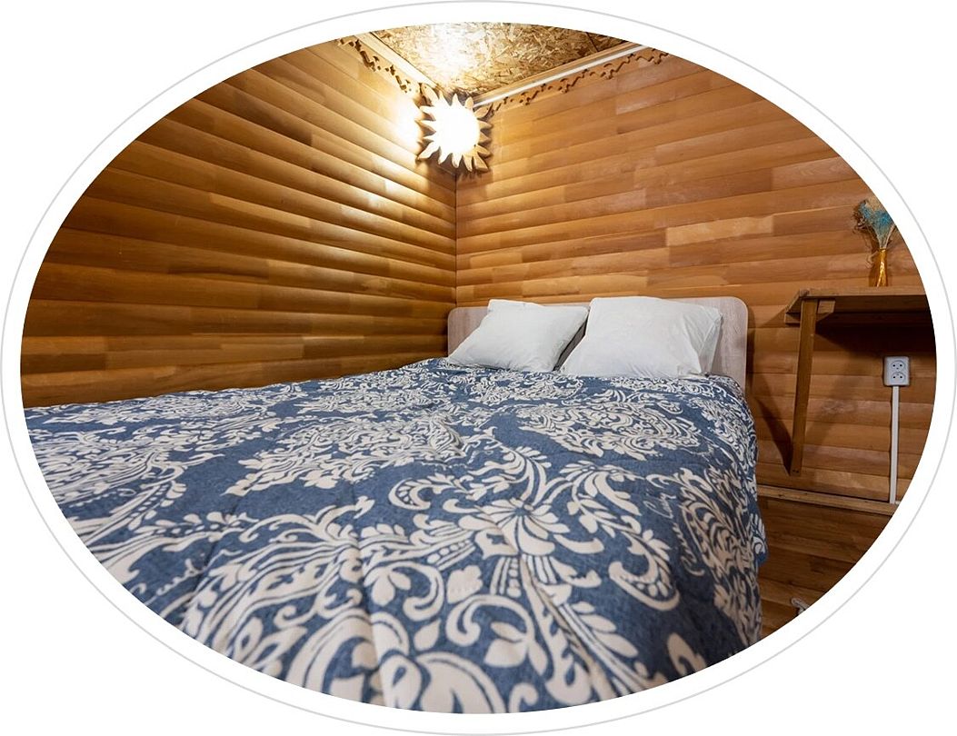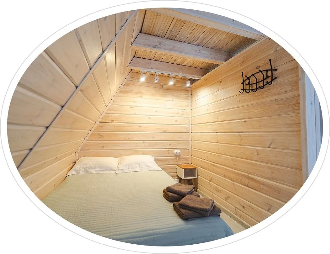 Для домов мы используем большие кровати, качественные матрасы, дорогое постельное бельё из натуральных материалов.