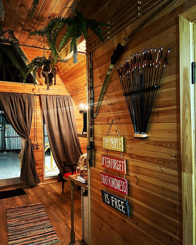 Глэмпинг «Не тот лес» приглашает своих гостей в мир утонченного комфорта и природной гармонии. В просторном А-фрейм доме с высокими потолками и панорамными окнами царит атмосфера, сочетающая уют и элегантность.