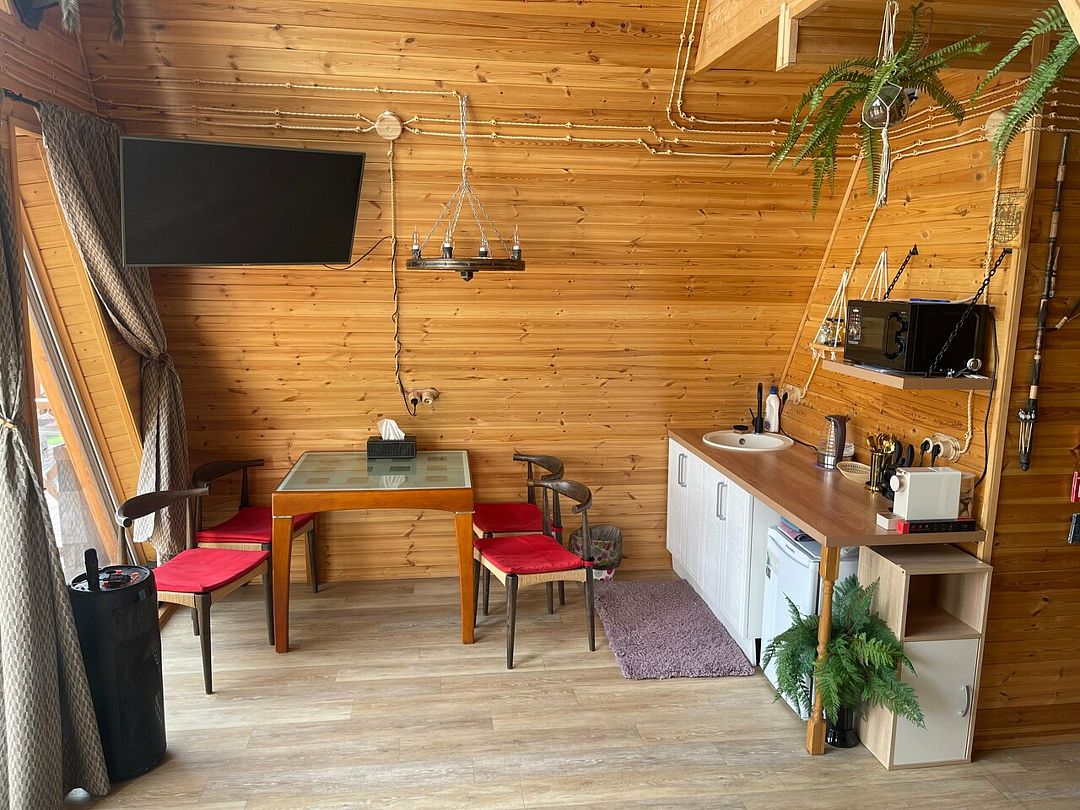 На территории глэмпинга расположена уютная беседка с мягкими диванами и изящным столом, созданная для душевных встреч и уютных вечеров. Это идеальное место для небольшой компании до двенадцати человек, где можно забыть о повседневных заботах и насладиться общением.