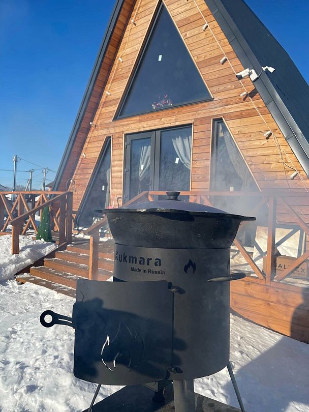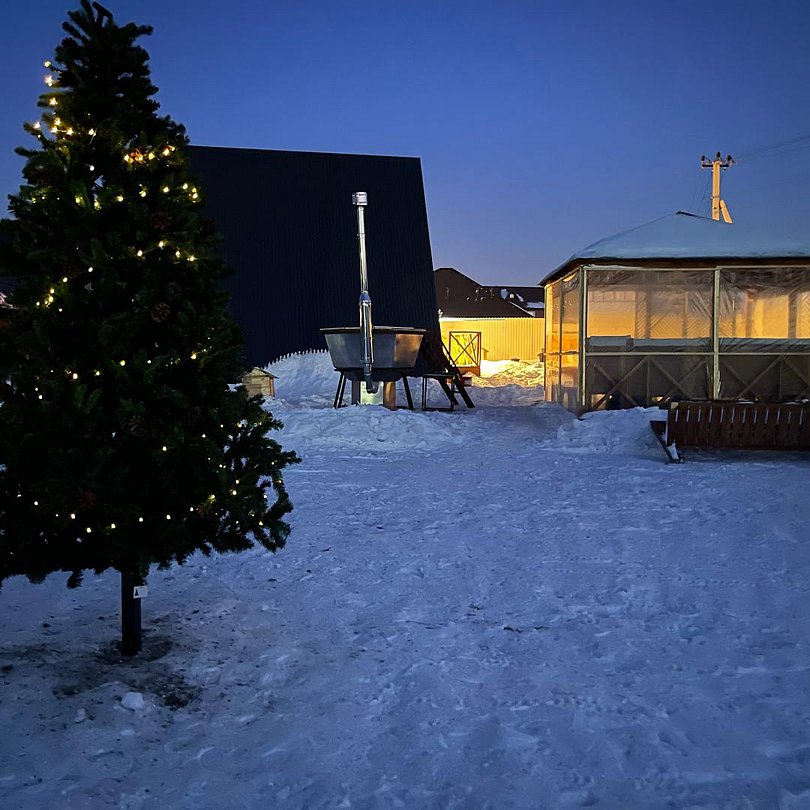 На территории глэмпинга находится уютная беседка с мягкими диванами, идеальное место для встреч с друзьями или близкими. Для любителей кулинарных экспериментов предусмотрены мангал и казан, а для релаксации — баня из сибирского кедра, где целебные свойства гималайской соли и белого кварца создают атмосферу соляного пространства.