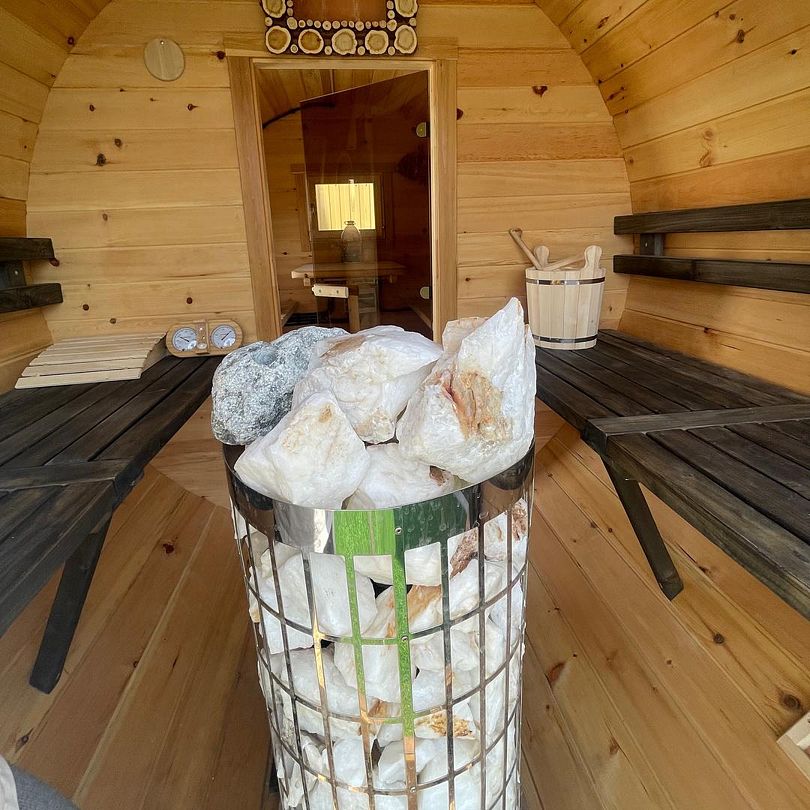 Минимальное время аренды: 2 часаГлэмпинг «Не тот лес» приглашает гостей в баню, созданную из сибирского кедра, которая поражает своей уникальностью. Внутри парной использованы гималайская соль и белый кварц. При опрыскивании камней создается эффект соляной комнаты, воздух наполняется целебными парами, даря ощущение свежести и гармонии.