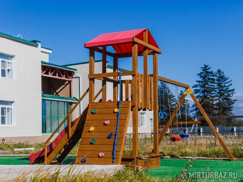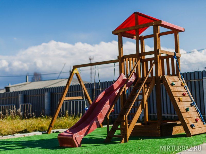 Для детей также предусмотрена игровая площадка с качелями и горкой.