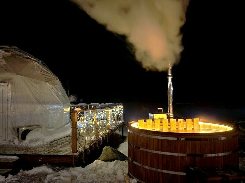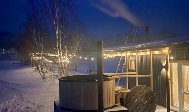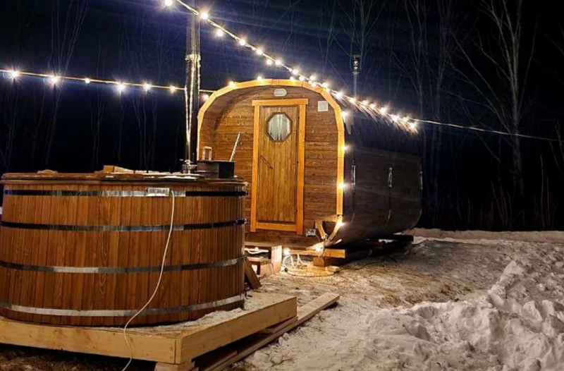 Для досуга на территории глэмпинга работает банный комплекс, представленный русской баней, баней-бочкой, банным чаном.