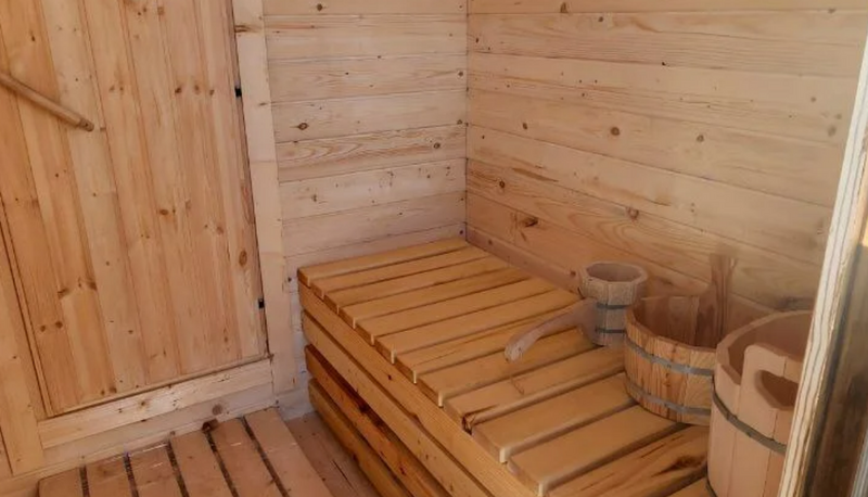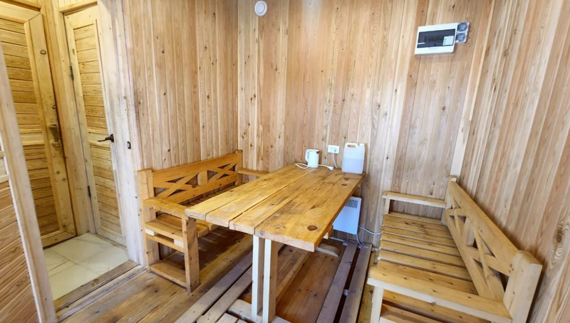 В бане есть чайник, простынь. Банный веник (380 ₽).
