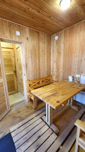 Вместимость большой бани 6-8 человек. В бане парная и комната отдыха.