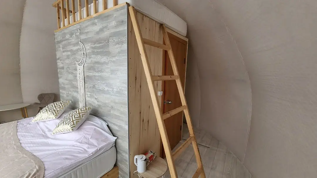 2хспальная/2 односпальных кровати, два бинбеги, биотуалет, кондиционер, теплый пол, чайник