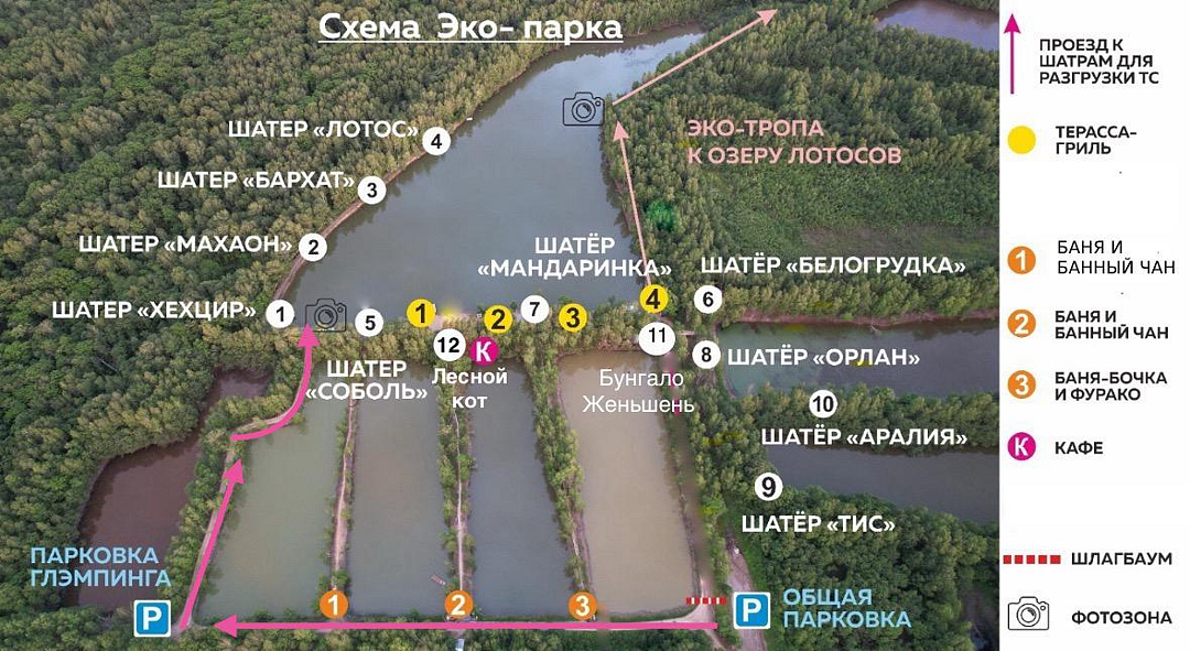 Если Вы не бронировали шатер или баню и у Вас нет гостевого ваучера, вход на территорию эко-парка платный: 300 ₽ за человека плюс 300 ₽ за парковку машины.