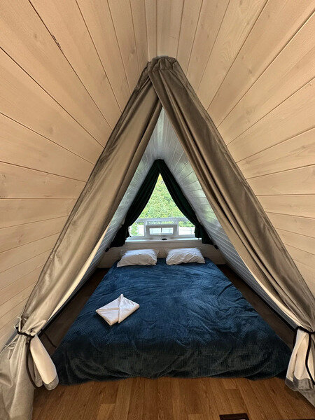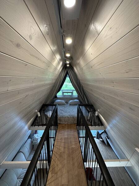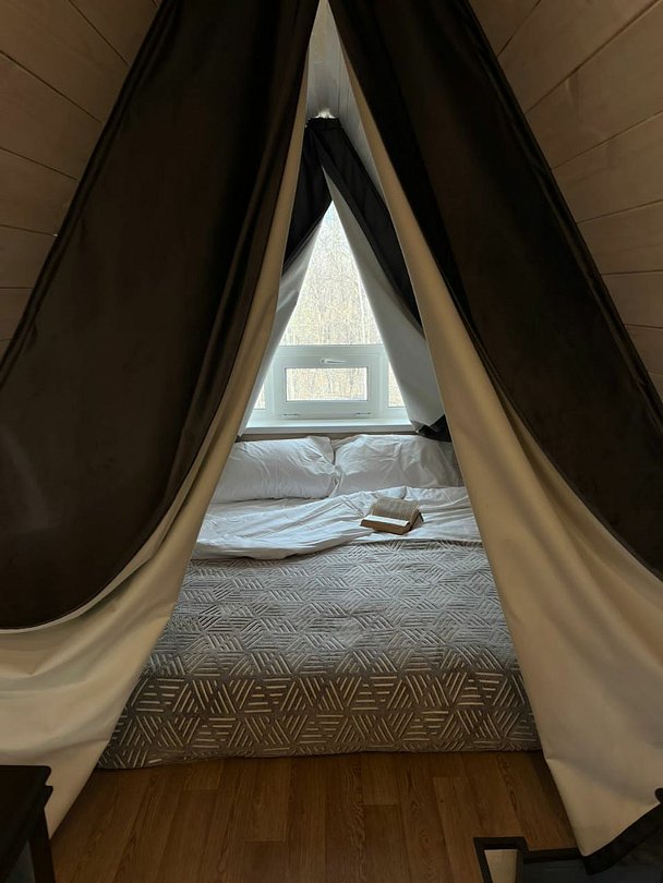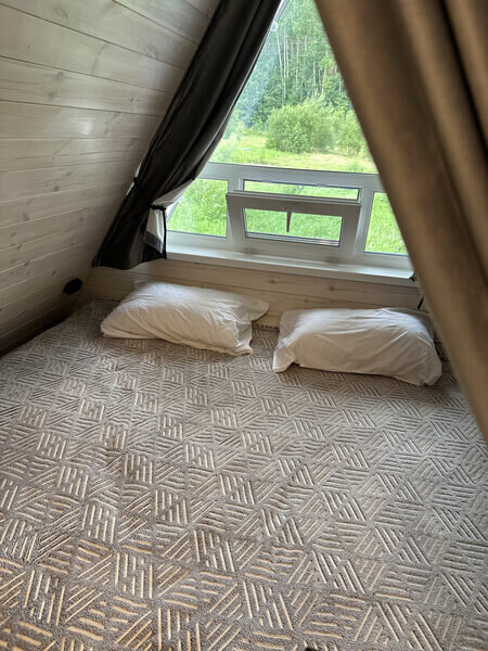 На втором этаже вас ждут два двуспальных места. При желании можно добавить две односпальные раскладушки, чтобы разместить всю компанию с максимальным комфортом.