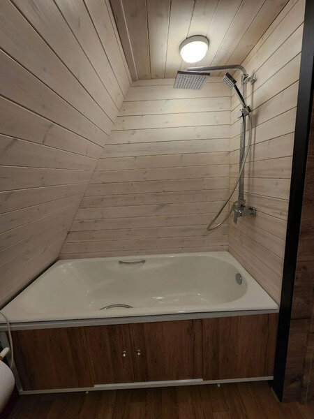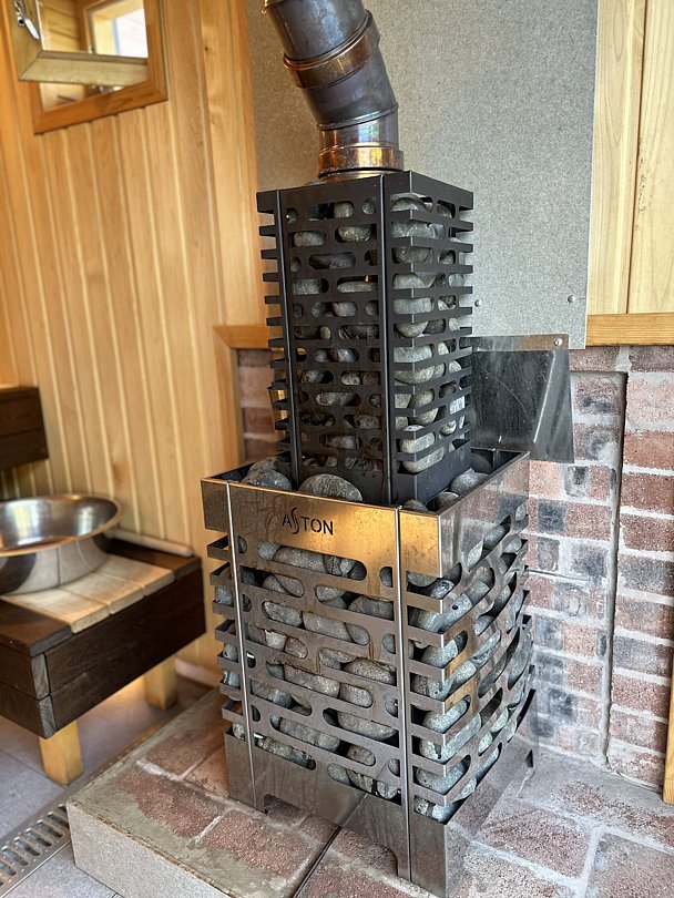 Рядом с баней располагается банный чан, где гости могут насладиться парением на свежем воздухе. Минимальное время бронирования составляет два часа, что обеспечивает возможность полностью расслабиться и насладиться отдыхом в комфортной обстановке.
