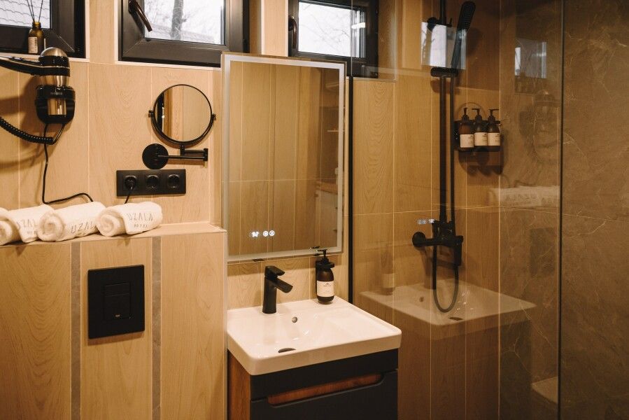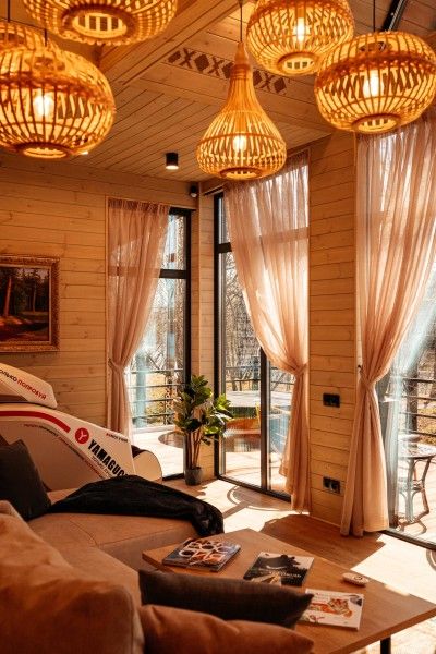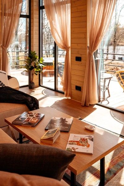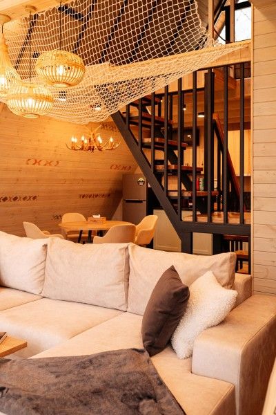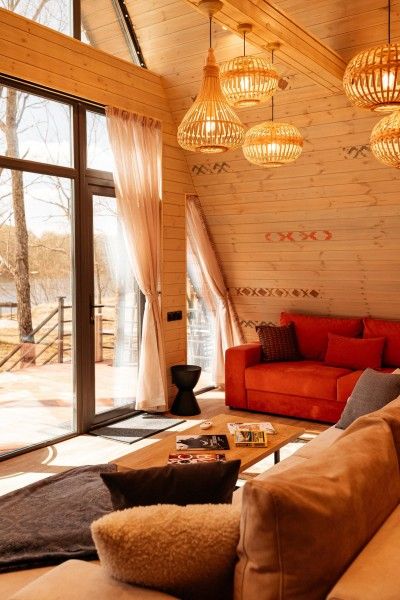 Новый формат размещения на Заимке Узалы: два этажа абсолютного комфорта и стиля на лоне природы. Панорамные окна позволяют наслаждаться видом на окружающую природу, а открытая терраса или веранда идеально подходят для вечерних посиделок.