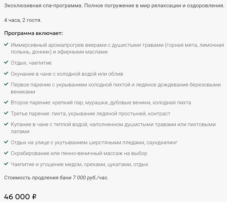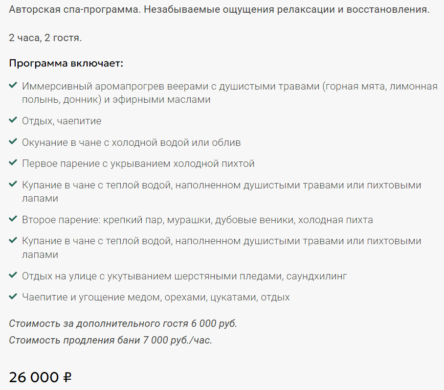 - бронирование банного чана — 6000 ₽ / 3 часа;