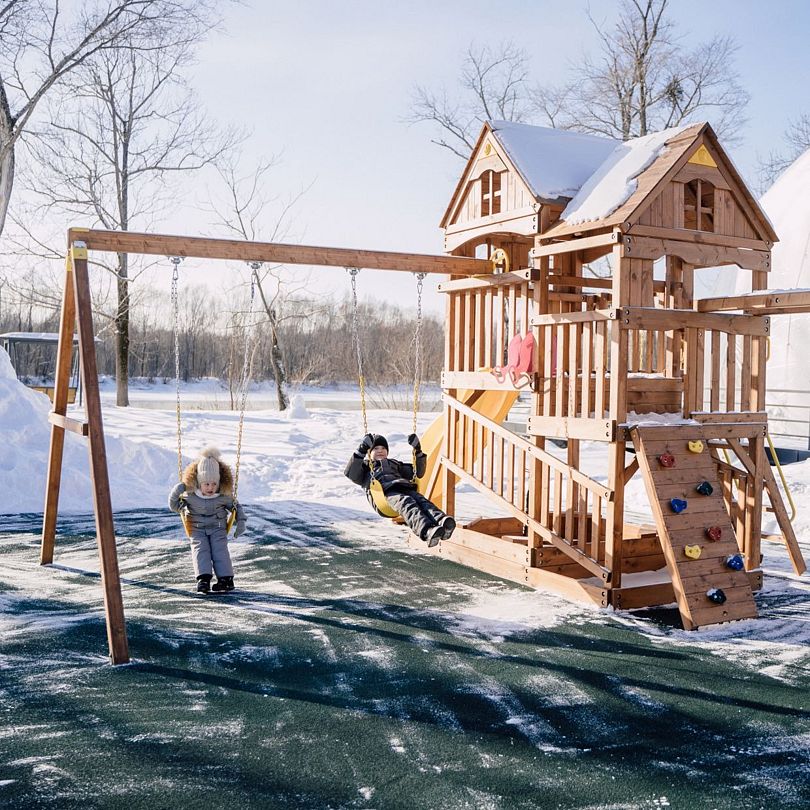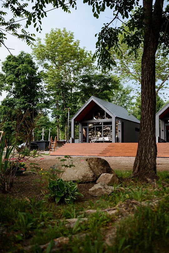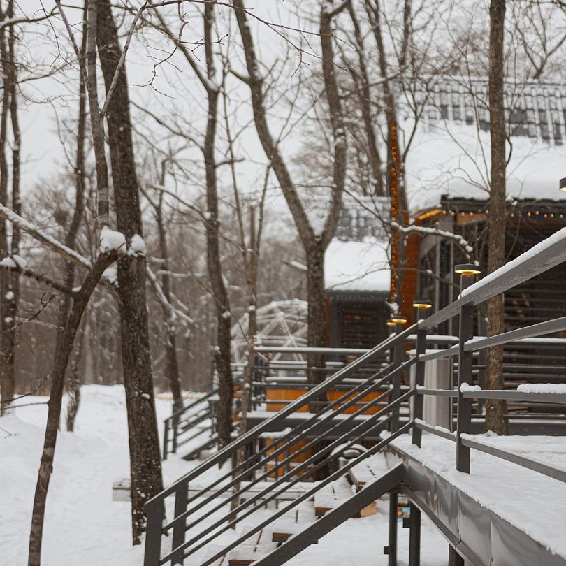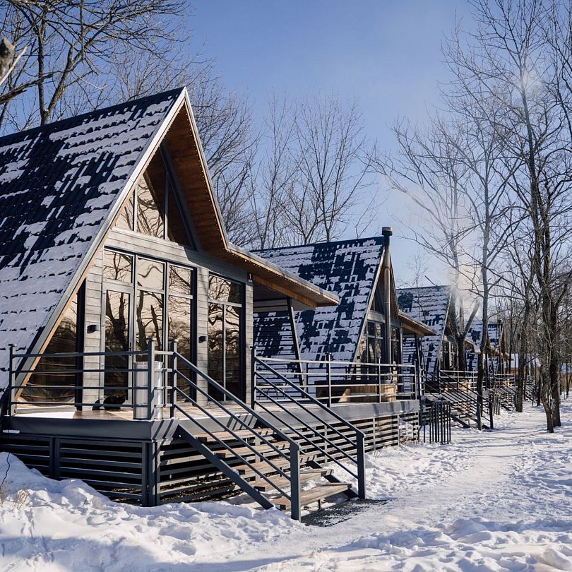 Читать полностьюНа террасе каждого дома в стиле A-frame расположен банный чан, согреваемый дровяной печью. Это не просто место для водных процедур, а настоящая парная под открытым небом, где можно насладиться теплом и красотой окружающего пейзажа.