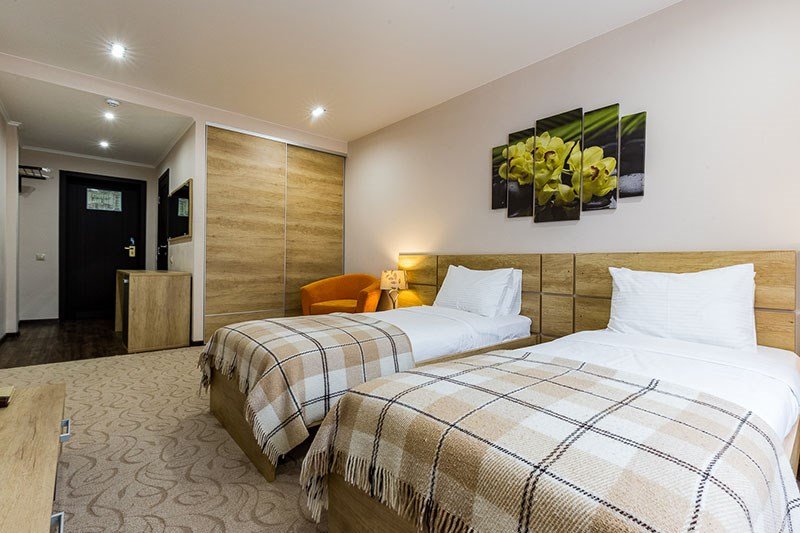Все номера «Стандарт superion» 2 места оборудованы одинаково. Все уютные и очень комфортные. Различаются только оформлением. В каждом номере: Ортопедические матрасы ширина каждой кровати 1.2 м Холодильник Телевизор с цифровыми каналами Телефон внутренней связи Собственный санузел с душем Фен, тапочки, полотенца и гигиенический набор (шампунь, мыло) Завтрак и ужин включены в стоимость проживания.Услуги и удобства
