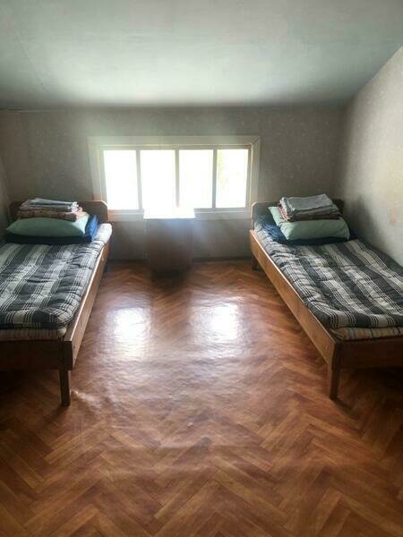 12 двухместных номеров с кроватями, тумбочками, вешалками для одежды, мини-обогревателями на всякий случай.