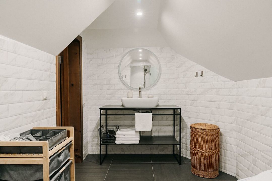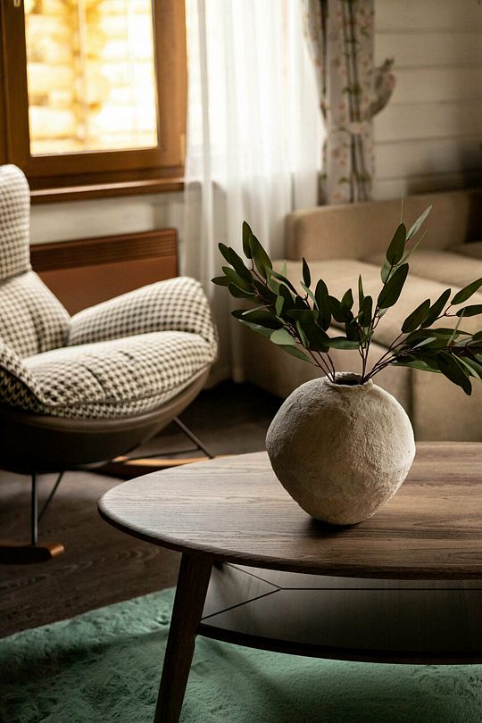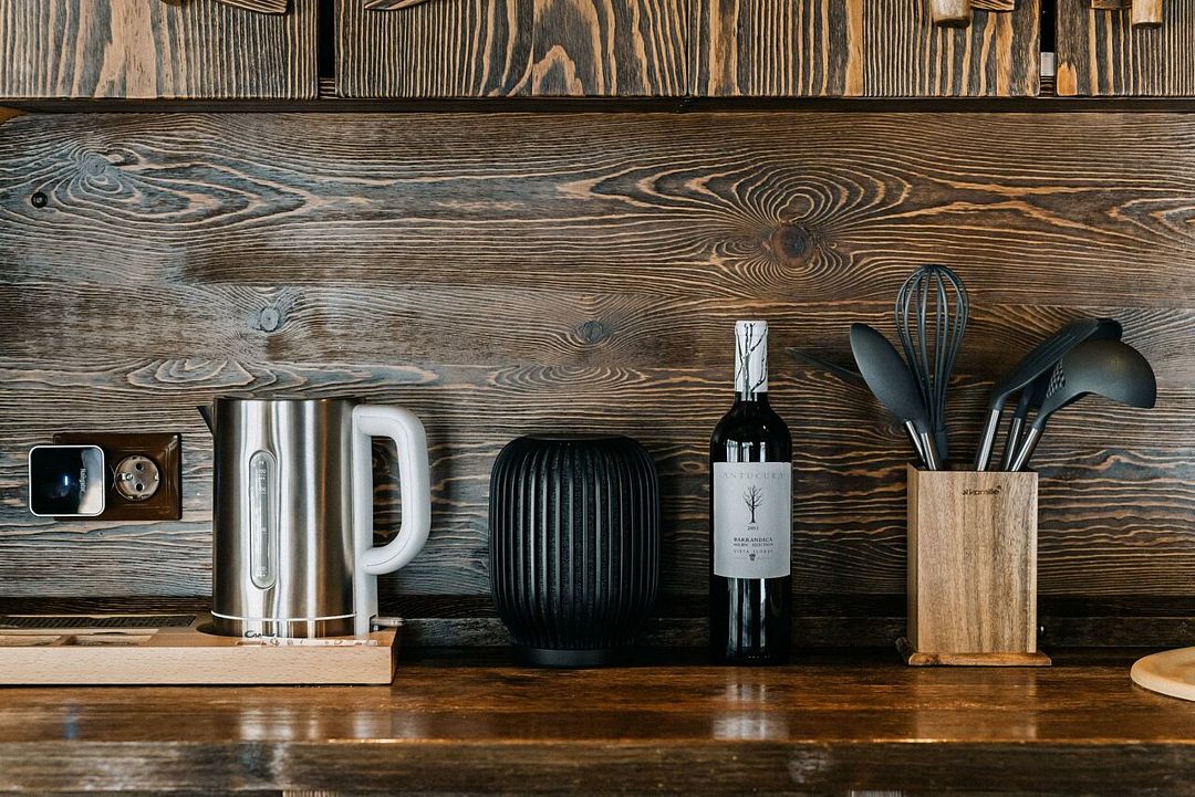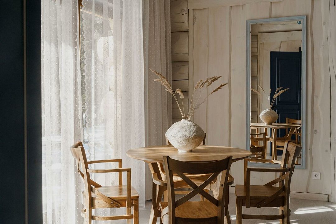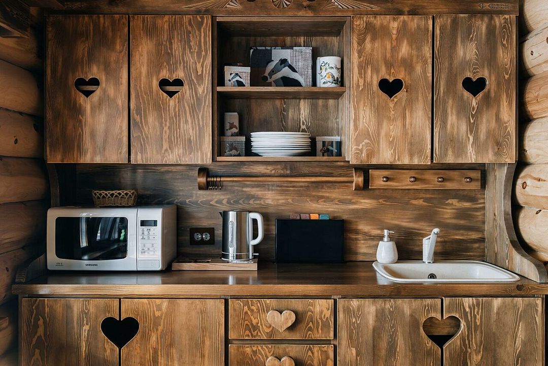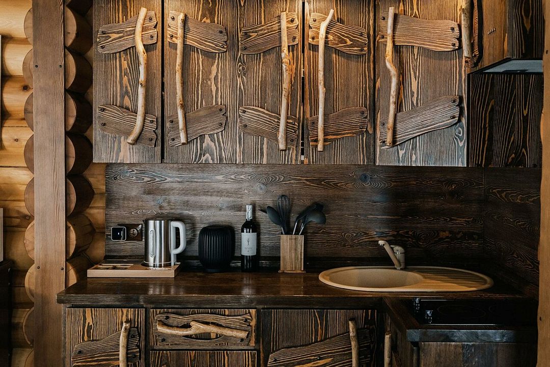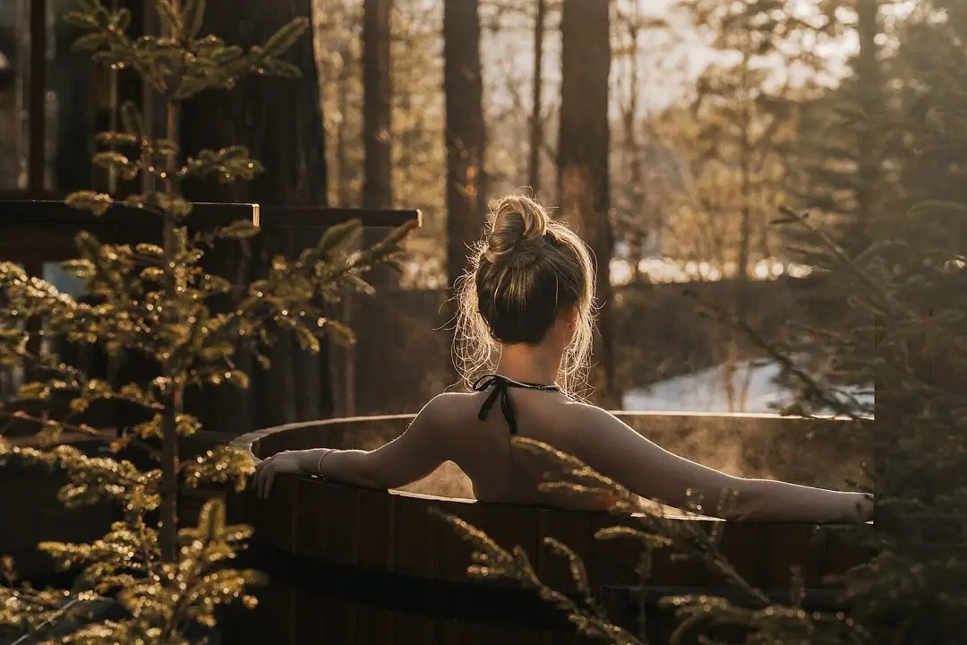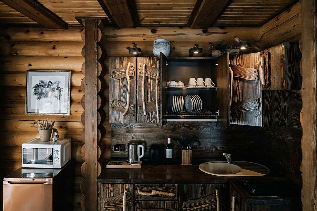 Гости, арендовавшие русскую баню, получают доступ к подогреваемой купели, открывающей великолепные виды на горы и лес. Для создания особой атмосферы предлагается возможность добавить в купель свежую пихту и цитрусовые за дополнительную плату в размере 5000 ₽, что сделает отдых еще более незабываемым.