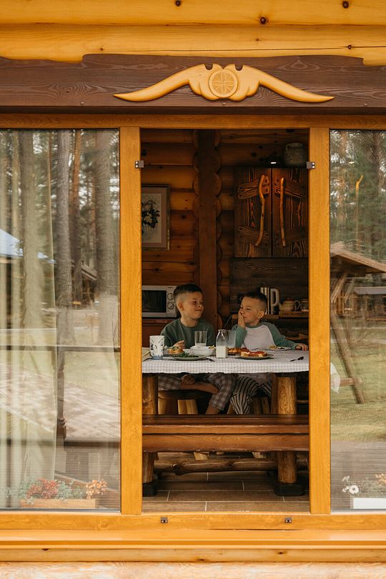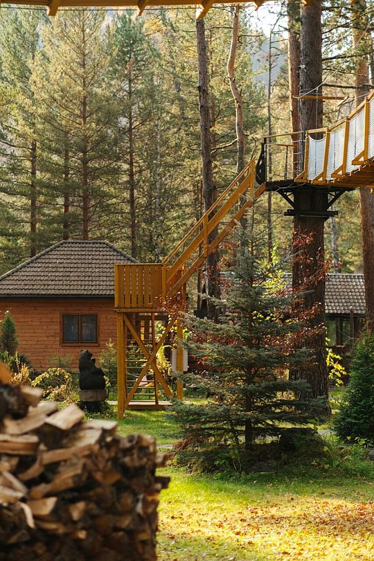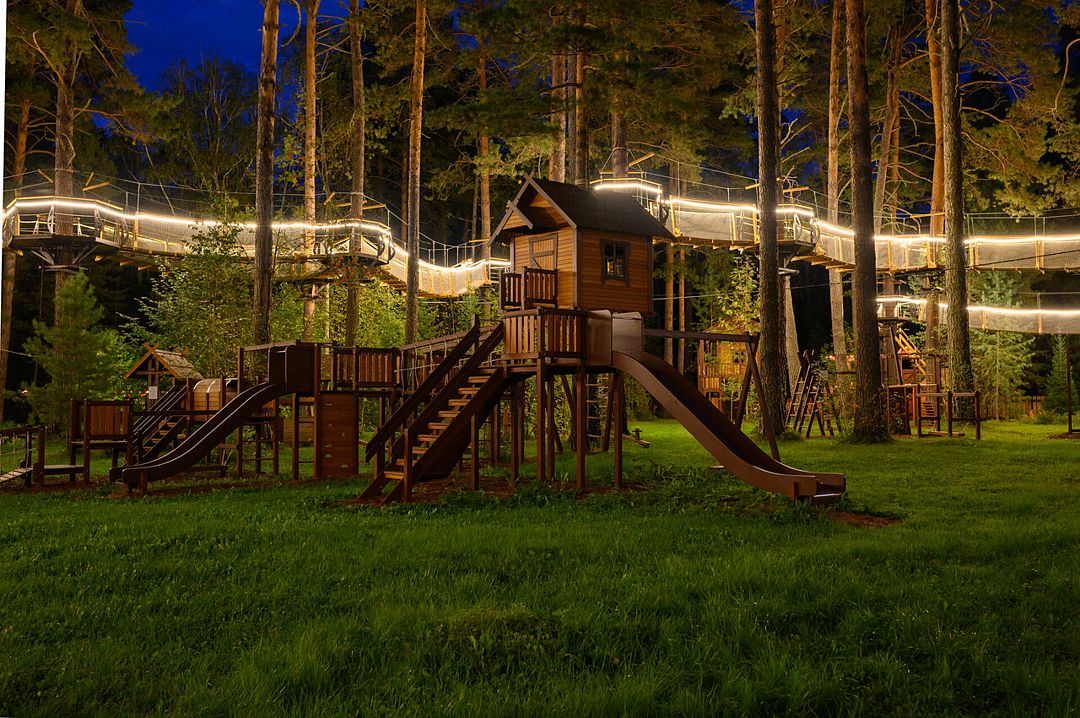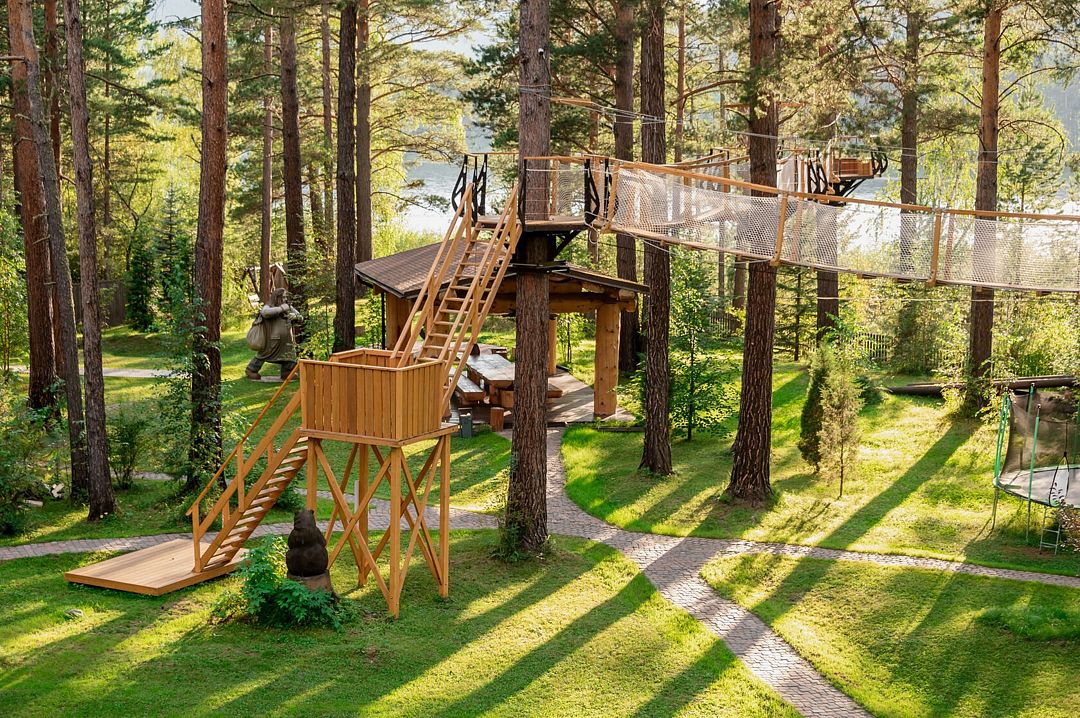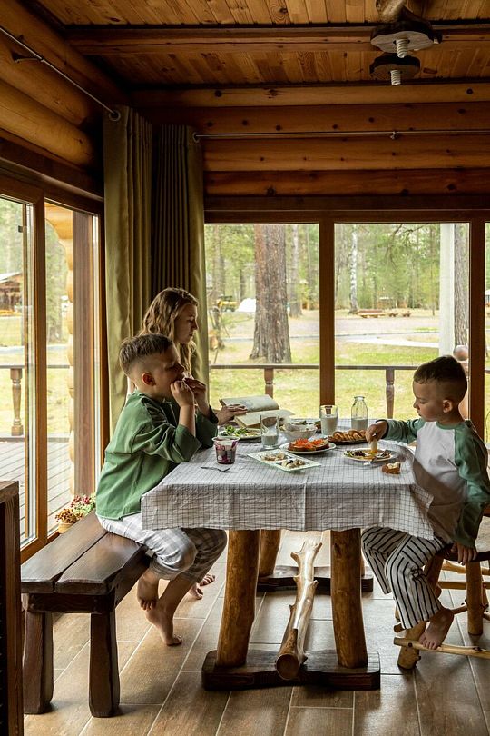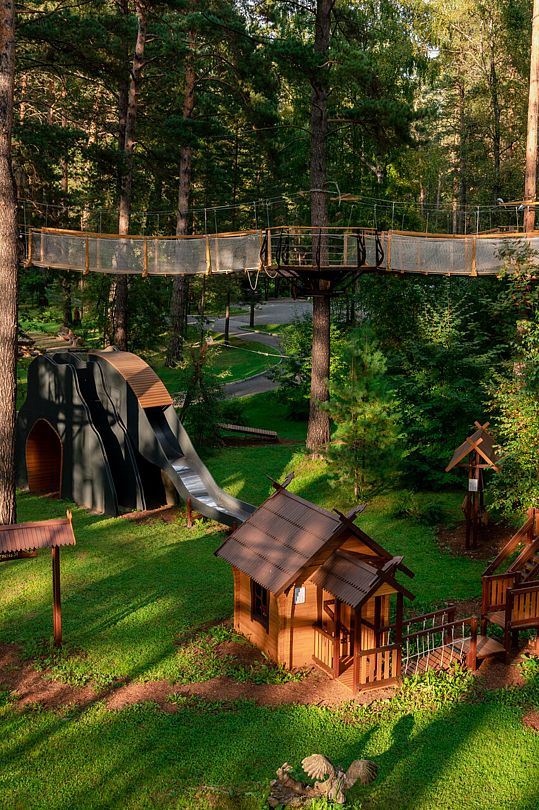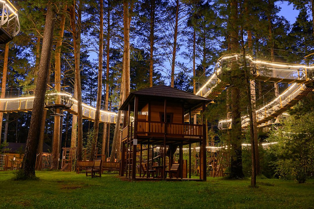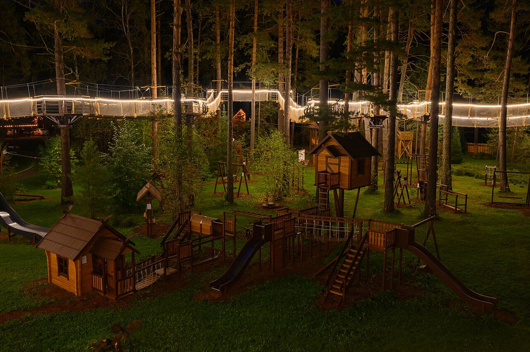 Путешествие с семьейМаксимально комфортный и качественный отдых на природе.Это место отлично подходит для семейного отдыха. Большая красивая территория с очаровательными домами. Есть все современные удобства для действительно насыщенного, приятного и качественного отдыха. На территории парк-отеля располагаются две бани с отапливаемыми купелями, большой и разнообразный детский городок, длинная подвесная эко-тропа с потрясающими видами, кафе с хорошим меню. Приветливый и отзывчивый персонал, отличные повара. Так же стоит отметить, что есть доступ к интернету через Wi-Fi. Очень рекомендую 👍