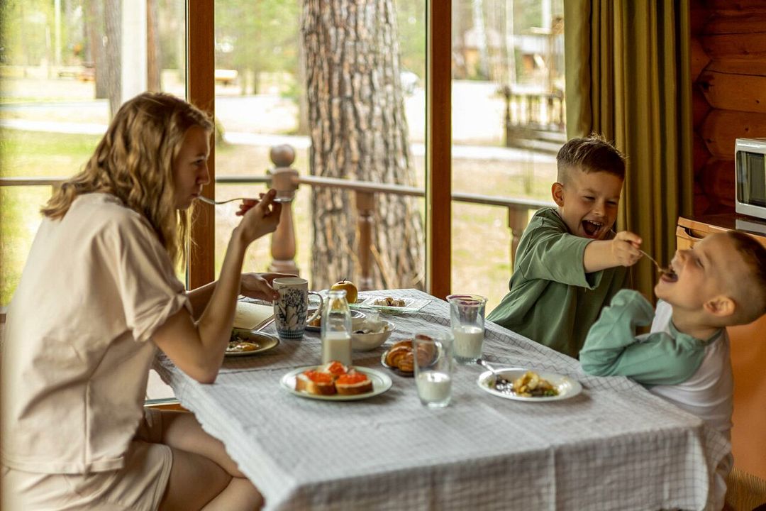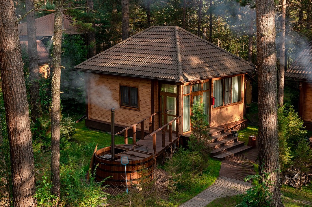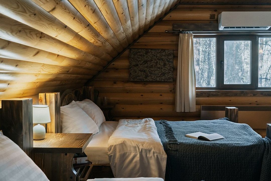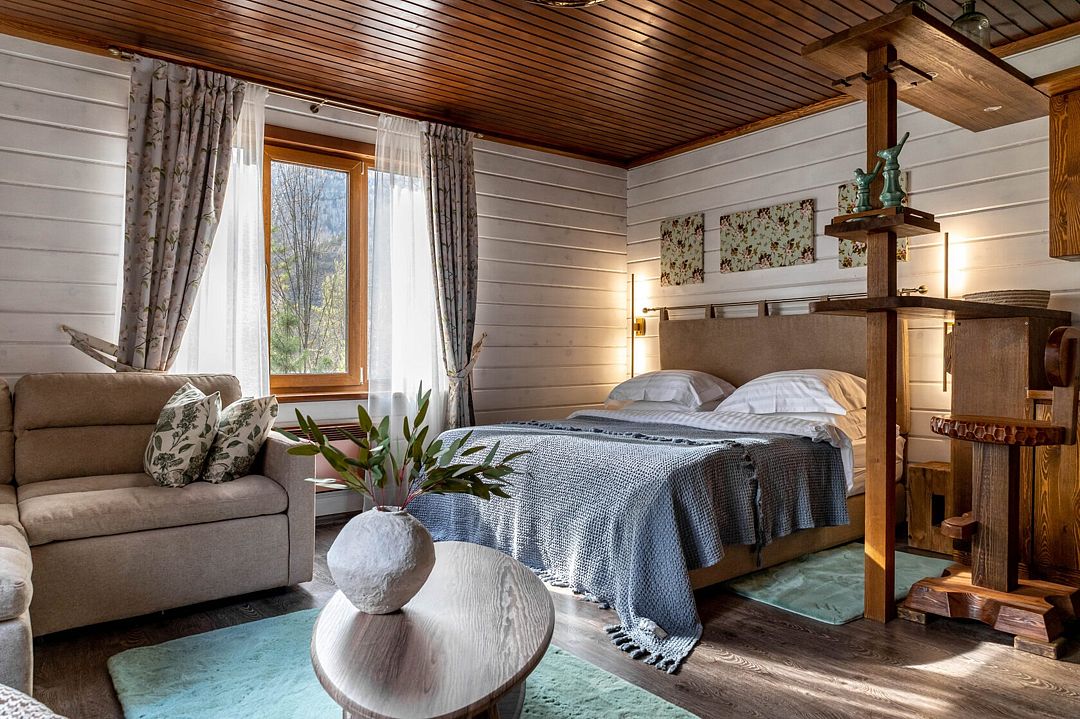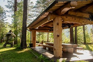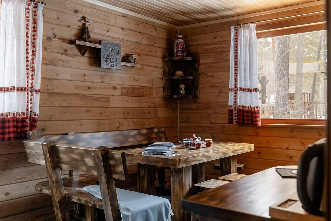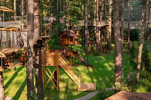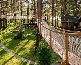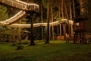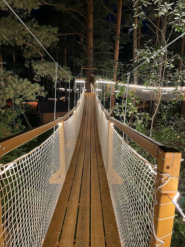 Путешествие с семьейМаксимально комфортный и качественный отдых на природе.Это место отлично подходит для семейного отдыха. Большая красивая территория с очаровательными домами. Есть все современные удобства для действительно насыщенного, приятного и качественного отдыха. На территории парк-отеля располагаются две бани с отапливаемыми купелями, большой и разнообразный детский городок, длинная подвесная эко-тропа с потрясающими видами, кафе с хорошим меню. Приветливый и отзывчивый персонал, отличные повара. Так же стоит отметить, что есть доступ к интернету через Wi-Fi. Очень рекомендую 👍