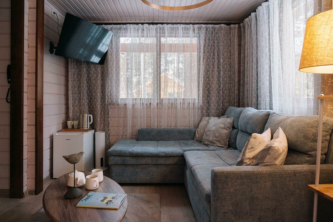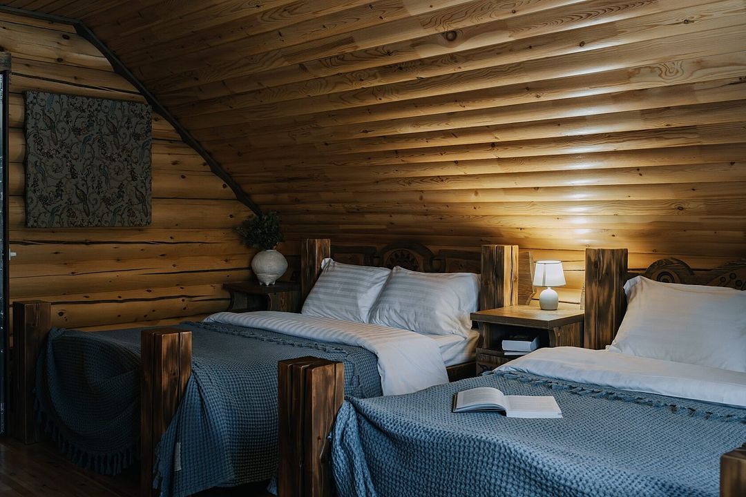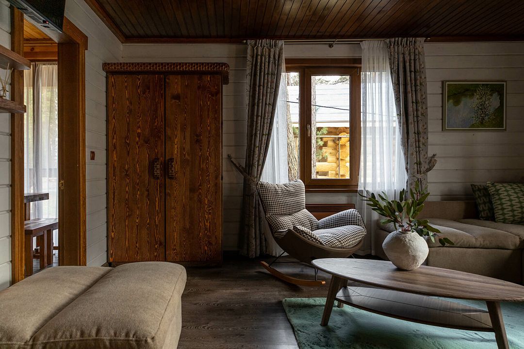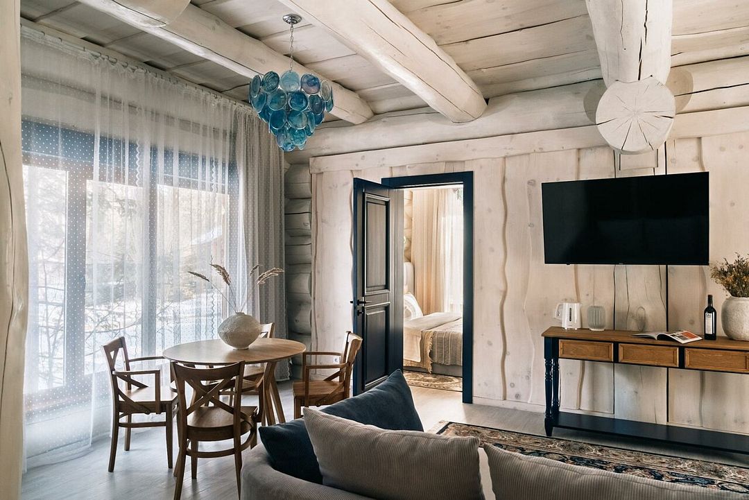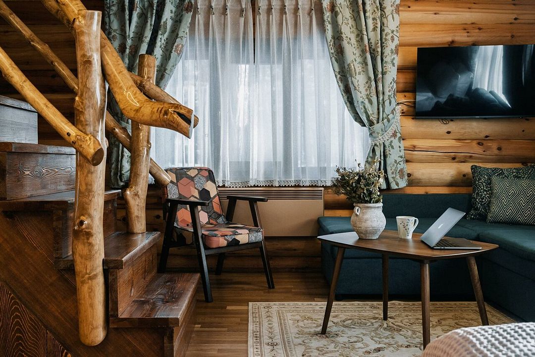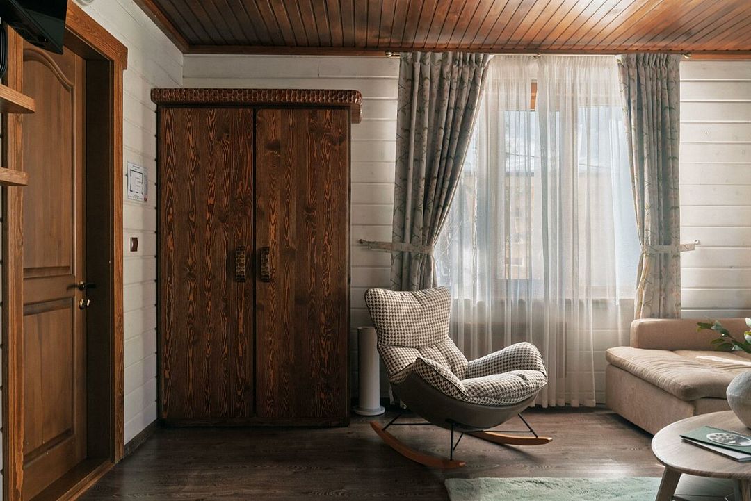 Путешествие с семьейМаксимально комфортный и качественный отдых на природе.Это место отлично подходит для семейного отдыха. Большая красивая территория с очаровательными домами. Есть все современные удобства для действительно насыщенного, приятного и качественного отдыха. На территории парк-отеля располагаются две бани с отапливаемыми купелями, большой и разнообразный детский городок, длинная подвесная эко-тропа с потрясающими видами, кафе с хорошим меню. Приветливый и отзывчивый персонал, отличные повара. Так же стоит отметить, что есть доступ к интернету через Wi-Fi. Очень рекомендую 👍